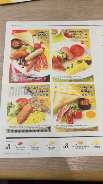 假日好耐都未试过早过12起身,今日早起,决定食个丰盛早餐奖励自己,落楼下试试cocomo 嘅早餐。这里地方唔大,先前好多时候都见有人等枱,今日早起,店铺刚开门,不用等就坐低了,太好啦。这里早餐选择近英式早餐,正合我心意,始终港式早餐太闷了!今朝2口子吃了英式早餐跟奄列早餐,这份量不少,性价比挺高呢。虽然牛角包较㶶,影响正体评分,但综合起来,有7分呢,因为沙律菜新鲜,沙律汁酸甜得宜,奄列更刚好7分熟