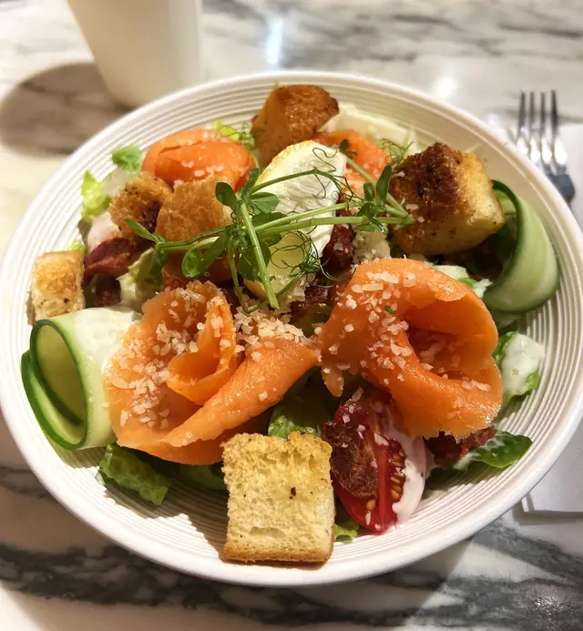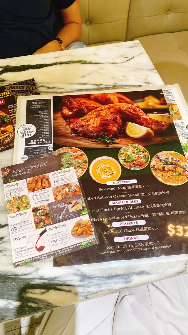 今日放工, 約了朋友去旺角家樂商場購物, 到了晚餐時間, 看看 OpenRice 附近餐廳介紹, 找到 CoffeeBreak通菜街近登打士街. 門面吾錯. 入門有打卡位, 有創意, 旁邊書架有旅遊書籍可以借看, 好暖心.食堂內裝修有花草點綴, 燈飾優雅. 感覺有時尚文青氣息.座位設計分方桌, 高座, 吧枱位, 好別致. 今晚餐廳客人很多,幸好有兩個位, 店員服務很好, 我們坐下來便迅速送上白開水, 天氣熱先飲一口透心涼.店員介紹抵食 法式香草烤雞套餐, 二人$338, 看看, 好抵食. 有沙律, 餐湯, 主菜 法式香草烤雞, 意粉或薄餅 ,甜品, 餐茶, 好豐富. 好岩口味啊.法式香草烤雞套餐, 精選餐湯: 南瓜蓉忌廉湯, 南瓜湯濃郁香甜. 南瓜口感順滑, 非常美味.經典凱撒沙律配煙鮭魚, 爽脆沙律菜, 鮮車厘茄, 鋪滿芝士粉, 配上麵包粒, 芝士, 食得健康又開胃. 煙鮭魚襯托新鮮蔬菜, 份外鮮美又可口.法式香草烤雞全只, 烤得香, 又有份量. 烤雞 已切開, 伴有香草, 車厘茄, 調味正. 每人半隻, 烤雞 肉質嫩滑, 有雞味, 煙鮭魚蕃茄忌廉水管粉 水管粉軟硬適中, 十分煙韌, 吃起來相當彈牙, 啖啖意粉都拌上 煙鮭魚, 蕃茄忌廉醬料, 口感一流.精選甜品 熱檸檬茶. 芝士蛋糕, 芝士味香濃, 口感細滑, 加上滑忌廉淡淡牛奶味. 正.熱檸檬茶, 檸檬味清新, 味道清爽怡人.餐廳食材新鮮, 水準確實不俗, 份量多, 吃得豐富. 價錢合理 侍應們招呼好. 這個晚餐, 令我們好回味啊 !! …Read More