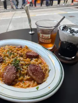 西营盘第一街嘅Coffee by Zion 位置非常方便,系正西营盘B出口对出,环境好舒适,有室外同室内嘅坐位。而室内设计极有现代感,再配搭柔和嘅灯光,令人感到好放松。除此之外,户外嘅空间坐位,有大量嘅植物做装饰🪴,感觉好Chill好Relax!我今日同朋友嚟叹下个tea,叫左一款主菜,两款甜品同两杯饮品!🥞Dubai Chocolate Croffle $129- 香脆嘅窝夫,再加上朱古力雪糕喺面,店员仲将金粉喷喺甜品上面, 非常有仪式感,打卡一流!📸而且甜而不腻,系完美嘅下午茶选择。🥯Half Baked Pistachio Basque Cheesecake $69- 系香浓嘅开心果芝士蛋糕,外焦内滑,令人一试难忘。🍝Crazy Carbonara Assassino w/ Fusilli Lunghi 0Bucati Pasta $129- 特色长螺旋意大利面,搭配浓郁carbonara酱汁,风味独特,值得一试。🧊lol Jasmine Green Tea $53- 茉莉花绿茶,有淡淡嘅清新茶味,适合搭配各种甜品,清爽解腻。☕Dubai Chocolate Mocha $53- 系浓郁嘅朱古力同香醇咖啡完美融合,仲有超可爱嘅 Chiikawa公仔系咖啡面, 真系得意到唔舍得😍…查看更多