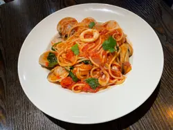 最近听朋友说,荃湾海滨长廊可通往屯门一带,好奇心下去走走,估不到海外滨长廊咁靓,天色渐暗,只走了一段。驻脚在海滨花园,眼前有一间隐敝于树丛中的餐厅,上前望下,门前的餐牌吸引了我,价钱相当平民化,于是乎入去帮衬了。餐厅不是很大,装潢设计带点小清新,感觉舒服。蕃茄海鲜意大利面青口,蚬和鱿鱼,鲜甜味美。尤其蚬肉好肥美。新鲜蕃茄制作,味道清甜。意大利面硬度恰到好处。什莓沙冰颜色好美,啖啖果香,不错的饮料。Read More
