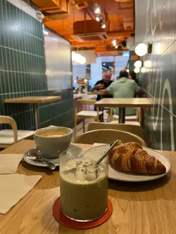 Bit of a shame I visited this place a little too early, as I was in a rush to go to work. As such, many of their baked goods and drink options weren't available yet so I accepted defeat by ordering a hojicha latte, a regular latte, and a croissant. The hojicha was decent, but it was served with a bit too much milk for my liking, so I was barely able to sense the taste of tea. The latte was also alright though, so it didn't particularly stand out compared to other coffee shops within the area. The croissant was very nice though, with a high contrast of exterior crunch and interior fluffy, the establishment demonstrated a great job at making pastry. But overall, unfortunately it doesn't stand out too much for me to want to visit again another time.…查看更多