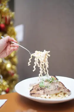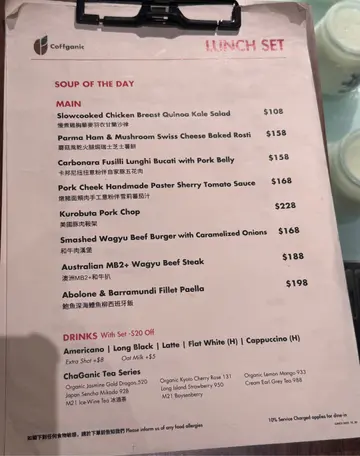 虽然依家只系10月中但基本上肯定Coffganic 会系25年去过最靓嘅Cafe (无之一)店家影容自己系瑞士风情但朋友仔都话新店装潢令人联想起西班牙国宝级建筑师Gaudi 实在不能同意更多 拱型门窗、天花一整排曲线线条成熟沉稳又带点童话Feel 相信好快就会成为城中大热店🔖 卡邦尼扭扭粉伴自家豚五花肉Lunch Set 附是日餐汤 要赞吓块Pork Belly 表层烤到有焦香扭扭粉比较碎、再硬身一点就Perfect目前供应8款Lunch Set HK108+有沙律、汉堡、意粉、牛扒、羊架都有!🔖 Latte 来自Smoky Shark 嘅呢款哥伦比亚豆配奶啡带点士多啤梨风味感觉是平时补钱先可以饮到嘅质素呢度跟Lunch Set 仲有优惠价!($22)必点!新店准备行朝啡夕酒模式佢哋咖啡师、调酒师来头都唔少喔附近收工嘅大可去Happy Hour 听讲佢哋有个招牌双皮奶鸡蛋仔好利害揾日要再去试吓先得~…查看更多