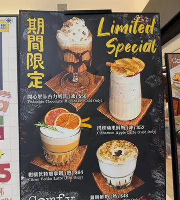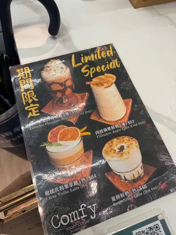 ⛂ 意大利芝士蛋糕 $58最后以湿润的提拉米苏收结提拉米苏份量颇大适合分享入口绵锦细滑酒味比较清淡( ⌯᷄ ·̫ ⌯᷅)Wrapped up the meal with a moist, decadent 𝐓𝐢𝐫𝐚𝐦𝐢𝐬𝐮 — perfectly portioned for sharing✨ It’s velvety smooth with a delicate, light boozy note that doesn’t overpower🍰☕⛂ 冻肉桂苹果鲜奶 $52外面很少见的肉桂苹果鲜奶 闻起来的肉桂味比喝起来浓整体味道不算和谐有点可惜ᯅ̈Tried the rare 𝐂𝐢𝐧𝐧𝐚𝐦𝐨𝐧 𝐀𝐩𝐩𝐥𝐞 𝐋𝐚𝐭𝐭𝐞, and it’s such a unique find🍎 The cinnamon aroma is stronger than the taste, which is a bit of a shame since the flavours don’t quite blend harmoniously🥹 Still, it’s a fun twist worth trying🤍⛂ 开心果朱古力奶昔 $50最近大热的开心果这里也有配搭朱古力光听名字也吸引奶昔很浓厚朱古力味较突出˃ ᵕ ˂The trending 𝐏𝐢𝐬𝐭𝐚𝐜𝐡𝐢𝐨 dessert is here, and it’s paired with 𝐜𝐡𝐨𝐜𝐨𝐥𝐚𝐭𝐞 — how tempting does that sound? The 𝐦𝐢𝐥𝐤𝐬𝐡𝐚𝐤𝐞 is rich and creamy, with the chocolate flavour stealing the show🍫⛂ 纽西兰肉眼扒 $178点了五成熟的纽西兰肉眼扒熟度刚好是我们喜欢的那样肉眼扒牛味适中没牛肩胛浓口感相对软淋带微微脂肪感(˶´ ˘ `˶)Ordered the medium 𝐍𝐞𝐰 𝐙𝐞𝐚𝐥𝐚𝐧𝐝 𝐁𝐞𝐞𝐟 𝐑𝐢𝐛𝐞𝐲𝐞 𝐒𝐭𝐞𝐚𝐤, and it’s cooked to perfection — exactly how we like it!! The ribeye has a balanced beefy flavour, not as intense as a chuck, with a tender and a hint of rich fat🥩⛂ 明太子珍宝带子扁意粉 $142必点这道明太子口味的意粉不断散发出浓香气的明太子与酱汁强烈依附著意大利粉煎至金黄的带子增添层次感(๑•ᴗ•๑)𝐌𝐞𝐧𝐭𝐚𝐢𝐤𝐨 & 𝐒𝐜𝐚𝐥𝐥𝐨𝐩 𝐋𝐢𝐧𝐠𝐮𝐢𝐧𝐞 is a must order!! The rich, aromatic mentaiko bursts with flavour, clinging perfectly to every strand of spaghetti🍝 Paired with golden, pan-seared scallops, it adds such a delightful layer of indulgence😍⛂ 香烤美国鸡翼配青柠蜂蜜柚子酱配薯条 $58选了青柠蜂蜜柚子酱的口味鸡翼外皮很脆却能保留肉汁伴菜的薯条热腾腾很脆很棒ฅ'ω'ฅZesty 𝐥𝐢𝐦𝐞 𝐡𝐨𝐧𝐞𝐲 𝐲𝐮𝐳𝐮 sauce flavor, and wow, it’s a game-changer!! 𝐁𝐚𝐤𝐞𝐝 𝐂𝐡𝐢𝐜𝐤𝐞𝐧 𝐖𝐢𝐧𝐠𝐬 have a perfectly crispy skin while staying juicy and tender inside🤤 Paired with piping hot, crunchy 𝐟𝐫𝐢𝐞𝐬 as a side, it was an absolute delight🥰————————————————————————————Comfy by Chef's Stage (观塘)观塘成业街7号东广场地下G25-31 & G59号舖…查看更多