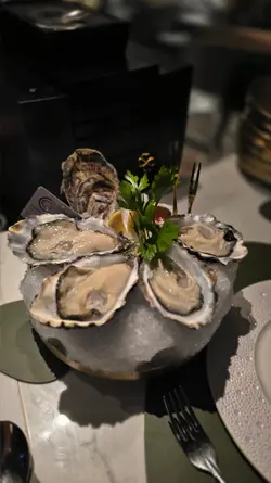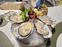 最近行开希慎广场,发现依间蚝吧西餐厅。环境宽敞舒适,采用开放式厨房,坐在吧台可欣赏厨师现场开蚝过程之余,仲有主菜9折优惠,难怪吧台坐满食客。香煎顶级肉眼牛扒配薯角伴红酒牛仔汁 $158牛扒8安士,熟度刚好,牛味唔太浓,肉质软腍多汁,搭配浓郁的红酒汁,非常入味。配菜烤蒜甜美,薯角外酥内软,唔错。加拿大龙虾意式扁意粉 $148龙虾肉质紧致弹牙多膏,味道鲜甜。扁意粉口感烟韧,底汁浓稠,味道香甜,好挂汁。Dine as a SET +$58主菜可选择转为套餐,包含汤/饮品和头盘。意大利迷你马苏里拉芝士及蕃茄沙律沙律菜新鲜爽脆,淋上黑醋汁,清爽开胃,搭配柔软的马苏里拉芝士,淡淡的奶香,沙律清新美味。香煎鸭肝配士多啤梨草莓酱 +$28鸭肝肥厚,表面焦香,口感外脆内软。搭配黑醋和草莓酱的酸甜,平衡了油腻感。南瓜汤南瓜汤香甜可口,口感顺滑,十分好味。青柠梳打梳打水清爽,青柠酸味醒神。…查看更多