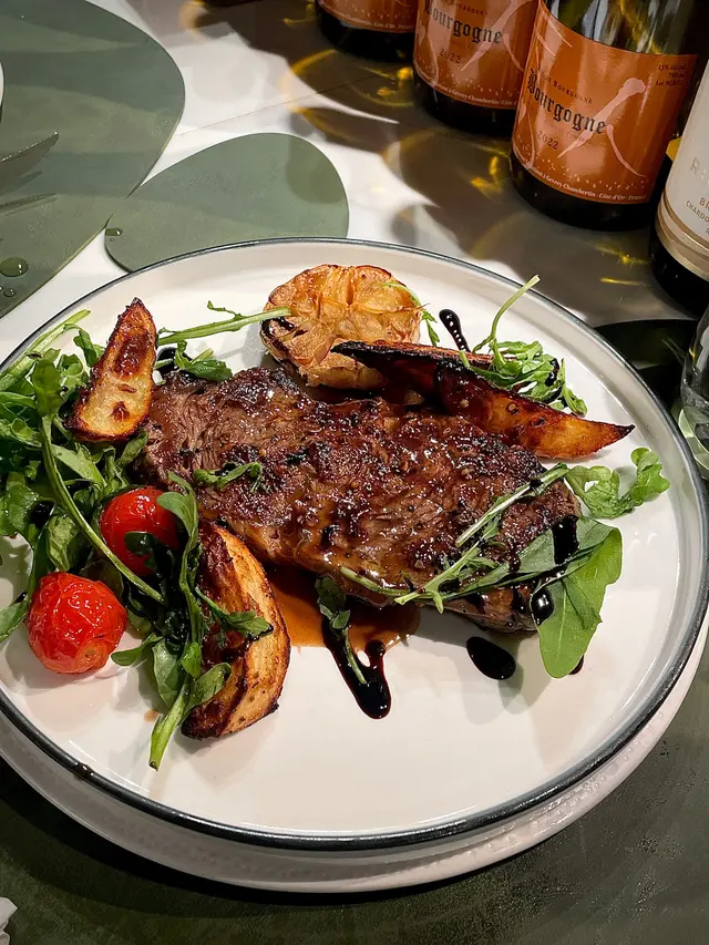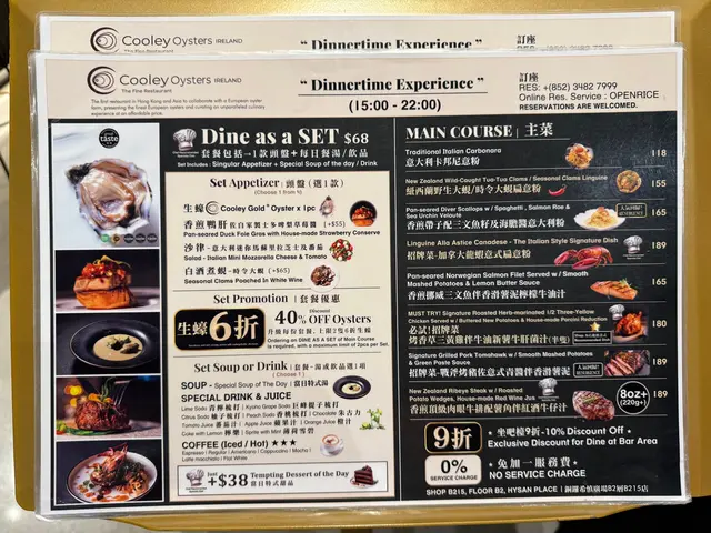 最近行開希慎廣場,發現依間蠔吧西餐廳。環境寬敞舒適,採用開放式廚房,坐在吧檯可欣賞廚師現場開蠔過程之餘,仲有主菜9折優惠,難怪吧檯坐滿食客。香煎頂級肉眼牛扒配薯角伴紅酒牛仔汁 $158牛扒8安士,熟度剛好,牛味唔太濃,肉質軟腍多汁,搭配濃郁的紅酒汁,非常入味。配菜烤蒜甜美,薯角外酥內軟,唔錯。加拿大龍蝦意式扁意粉 $148龍蝦肉質緊致彈牙多膏,味道鮮甜。扁意粉口感煙韌,底汁濃稠,味道香甜,好掛汁。Dine as a SET +$58主菜可選擇轉為套餐,包含湯/飲品和頭盤。意大利迷你馬蘇里拉芝士及蕃茄沙律沙律菜新鮮爽脆,淋上黑醋汁,清爽開胃,搭配柔軟的馬蘇里拉芝士,淡淡的奶香,沙律清新美味。香煎鴨肝配士多啤梨草莓醬 +$28鴨肝肥厚,表面焦香,口感外脆內軟。搭配黑醋和草莓醬的酸甜,平衡了油膩感。南瓜湯南瓜湯香甜可口,口感順滑,十分好味。青檸梳打梳打水清爽,青檸酸味醒神。…查看更多