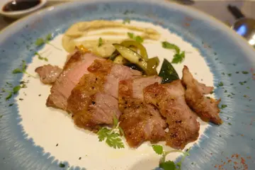 炭烧伊比利亚黑毛猪梅肉配松露薯蓉伴芥末籽汁散发焦香惹人垂涎,每件薄切炭烧黑毛猪梅肉肉嫩又 Juicy!