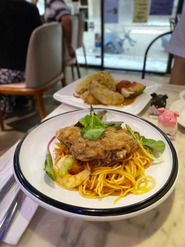 六月果時有兩星期都無得做夜市堂食,所以特登Lunch 時段過黎撐場幫襯。星期日晏晝一點🕐都唔係好full🙈,坐到三點基本上已經無曬客,每張枱好似只係做得一轉客。黎緊有返夜市啦,金魔法師係時候出手!🌗SL2. 光復胡椒雞扒配茄汁蝦意粉🍝 $108雞扒麻麻地,炸得比較老;蝦🍤大隻同爽口;食意粉最怕食到無味意粉,呢個茄汁意粉味道ok 唔會太酸,又唔會稀,可以掛曬上意粉度。🌗SL3. 香煎石斑魚柳意粉 $98魚柳又幾滑喎,外層又夠香脆,不過外觀上差少少啫。🌗SL1. 美國安格斯牛肩扒配黑松露意粉 $108近排唔食得牛所以冇試味,朋友話生熟啱啱好,但意粉就比較膩,見住佢由頭食到包尾🤣。是日甜品 跟餐+$28唔記得叫咩名啦🙈,蛋糕🍰酸酸甜甜唔會太膩。面層似係橘子🍊,少少酸味都無,甜得黎又唔係死甜,應該唔係浸過糖水掛。P.S. 好掛住濟洲嘅橘子汁,真心超好味,有得去旅行嘅話一定要飲!以上lunch set好似幾一般,但係我好有興趣試佢哋嘅二人假日特選海鮮餐($398),包括有海鮮拼盤(龍蝦、海蝦🦐、翡翠螺🐚、藍青口、生蠔)、湯、美國prime 級燒牛肉配脆薯片、紅蝦汁燴意粉配海鱸魚。一個餐有seafood platter 同牛好似幾吸引🤤🤤🤤。查看更多