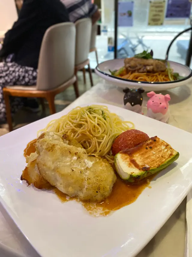 平日晏就兩點幾,只得兩三檯客,顯得比較冷清,抗疫午市套餐嘅價錢合理。.每個餐都會配自家製麵包及餐湯。🍽:餐湯好味😋飲得出裡面嘅材料係新鮮打碎再煮成湯。.「菠菜汁意粉配香煎海鱸魚」$78🍽:我都幾鍾意呢個菠菜汁,海鱸魚煎得香脆,不過就略嫌偏細塊。😜.「火腿布冧連豬柳配意粉」$78🍽:我鍾意個汁,酸酸甜甜咁好開胃,不過豬柳似乎醃製得太耐,味道偏咸,但肉質好味,唔會好韌,整體唔錯。份量亦都啱啱好。查看更多