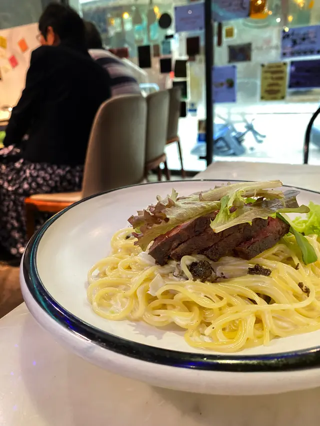 尋日上網見到話有間舖頭告急於是今日就過嚟試吓的而且確隔離嘉寶好多人呢間就得5-6枱可能始終隔咗個圍封咗嘅單位唔係專登搵可能唔小心就Miss咗一入到去坐低首先就覺得啲裝修好有誠意然後啲菜單仲令你會心微笑我哋兩個人嗌左安格斯牛肩扒配意粉另外仲有個香煎深海魚柳前菜一個要咗餐湯一個要咗沙律沙律食落唔錯既d菜都幾新鮮南瓜湯飲落有少少奇怪感覺係有南瓜嘅texture但冇南瓜嘅味牛肩肉意粉我哋走咗黑松露醬因為有人唔食食落個意粉都幾creamy仲有唔少蘑菇夾住牛柳都幾林而且好有牛味個魚柳一開始有少少出事個皮唔脆之餘仲吸晒油不過同老闆講咗之後重新整過一碟服務態度幾好而且重做之後個魚柳非常好食個皮好脆之餘入邊亦都好鮮甜整體感覺來講感覺質素有少少唔穩定其實食材本身覺得幾新鮮應該可以做得更好呢個價錢做lunch作為客人會expect得更多不過睇返店主回應話今日大廚冇返工希望下次會再改善啦查看更多
