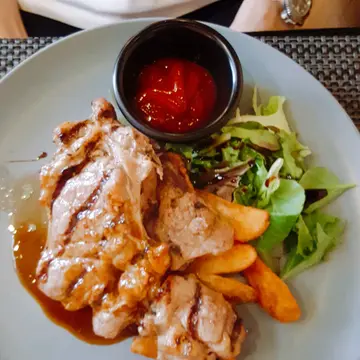 荃湾广场戏院对出条街有好多小店,唔想成日食连锁店咁闷可以试下。呢间店环境唔错,座位都好舒服。每个Lunch Set配沙律或例汤、主菜、饮品、甜品。我地各选一,沙律正常,南瓜汤就较淡味,餐包反而有惊喜,烘到脆脆地配蛋黄酱,唔错😋鲜虾咸蛋黄长通粉🦐咸蛋控表示咸蛋味唔够出,酱汁Creamy,味道唔错但唔够特别。虾就普通普通。炭烧澳洲牛肉眼扒配薯菜🐂牛扒几嫰同Juicy,薯角香脆👍但份量较少。饮品叫左冻奶茶同加钱转朱古力,都正正常常。😈我地两点后入座,有八折,好抵食。店员亦好有礼貌,整体还不错吧。