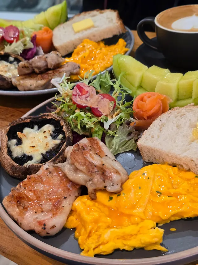 平時都好少去間呢區,但係有次見到呢間細細間嘅cafe,價錢唔貴就試下,點知發現性價比好高!食咗幾次都忍唔住要share下比大家全日早餐(炒蛋,麵包,沙律,大啡菇,蜜瓜,煙三文魚,雞扒) $92佢份量好足,雞扒有兩小塊,麵包好軟熟,配埋牛油好正,炒蛋份量正常而且又滑,仲有多汁嘅大啡菇同整到花花外型嘅煙三文魚,比較特別係有蜜瓜,唔係間間cafe嘅all day breakfast都會有,食過幾次都覺得甜得嚟好清爽,係一個幾正嘅配搭牛奶咖啡 (特別注意!set lunch價錢已包)單價$38Weekend去cafe食all day breakfast會包埋杯咖啡真係好少有,而且仲有靚靚拉花,整體體驗良好雖然要自己去買同攞野食,但cafe唔太大間還可以,而且以呢個價錢可以嘆到全日早餐包埋杯咖啡真係性價比極高,至於舖頭地點都好近石門站,好方便,如果假期去食就要早d啦,lunchtime 都多人排隊查看更多