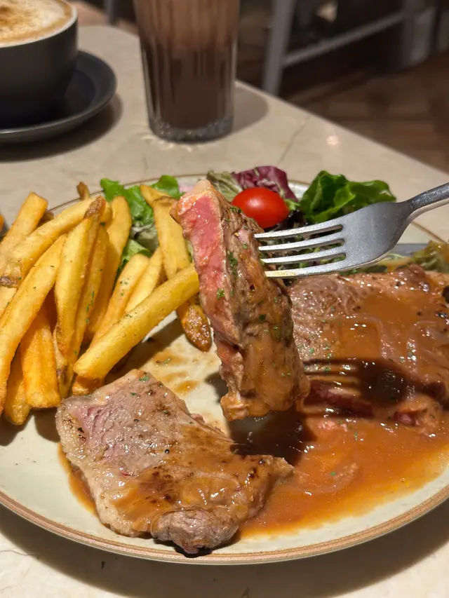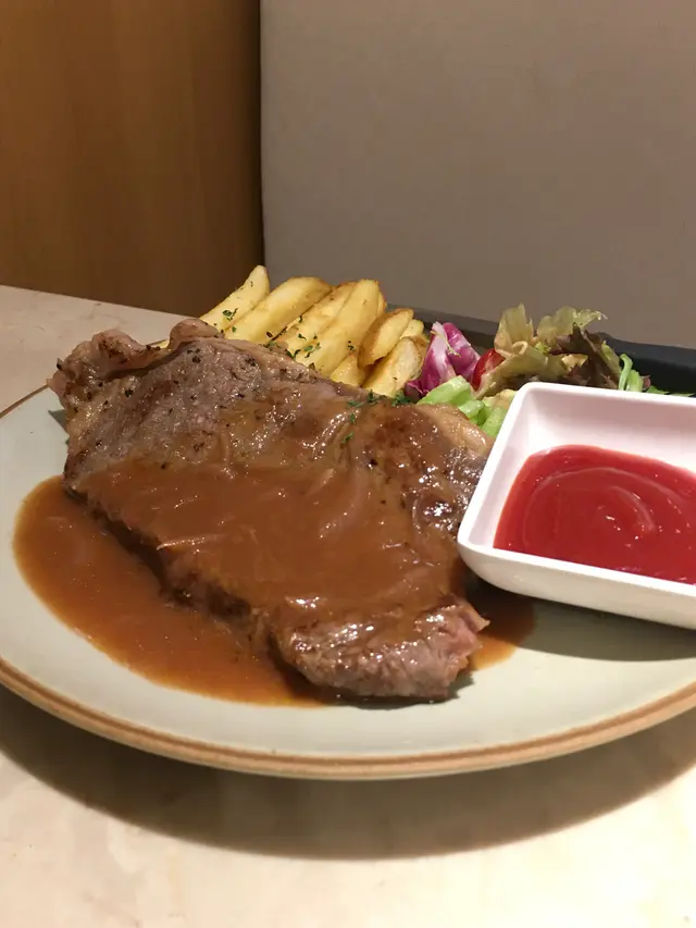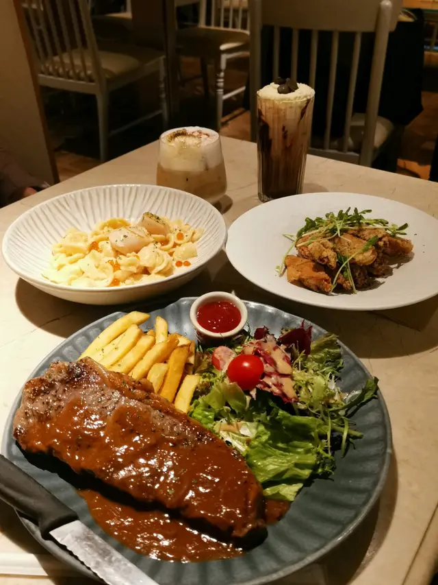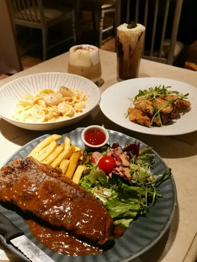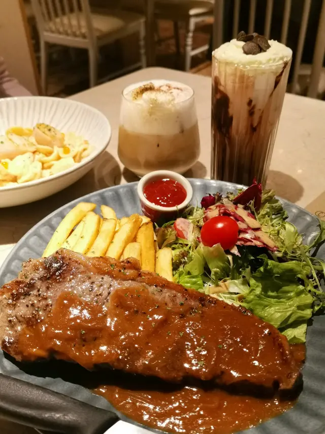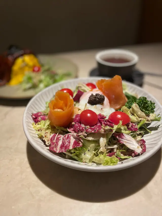 🤸🏼♀️🤸🏼♀️🤸🏼♀️做完運動走到新蒲崗,發掘到一間隱世餐廳!呢間舖頭真係低調到極點,門口連個名都冇,得塊餐牌默默守候,唔留心真係會錯過㗎~餐廳裝修走優雅路線,同外面工廠區嘅環境形成有趣對比。😚坐低後點咗個幾特別嘅「牛肉面意粉」同「是日沙律」,再加杯凍蜜桃茶。先講個是日沙律,新鮮度滿分!羅馬生菜脆卜卜,加埋爆汁番茄仔,配搭芝麻醬汁竟然出奇地夾,清爽開胃。☺️主角牛肉麵意粉有驚喜~牛肉燉得軟腍入味,帶住啲肥美脂肪,入口即化,鍾意食肥肉嘅我真心滿足!🤣意粉硬度煮得剛好,可惜個汁掛粉能力稍嫌不足,感覺似用豆粉水開,味道同質感有少少分離。飲品方面,蜜桃茶揀咗少冰少甜,甜度輕盈,正好解咗牛肉嘅膩感。最後埋單$158,以新蒲崗嚟講算係中上價位💲💲,不過考慮到環境同食物質素,都算合理。如果汁醬方面再改良一下,絕對會再encore!整體評分:🌟🌟🌟 (正常發揮! 價錢調節下,可能會再吸引d) …查看更多