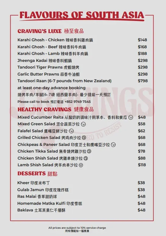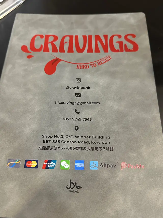 CRAVINGS (油麻地) 网上订位即赚Rice Dollars 网址: https://s.openrice.com/QrLS0xX0C00 地址: 香港油麻地廣東道871號地舖 电话: +852 97497545