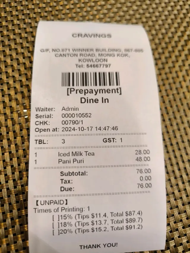CRAVINGS (油麻地) 网上订位即赚Rice Dollars 网址: https://s.openrice.com/QrLS0xX0C00 地址: 香港油麻地廣東道871號地舖 电话: +852 97497545