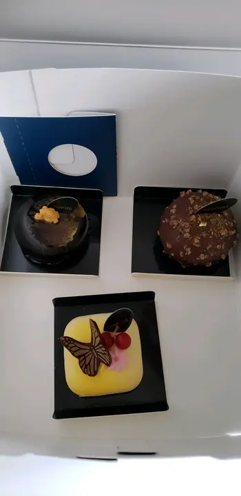 平时这间店的蛋糕平极都要三十几蚊件,贵要五十几蚊件。但今日做特价一佰蚊三件任选。平均三十几蚊一件,就本住试下无坏心态,蛋糕好靓但有点甜。都可以。但...........重点是.........