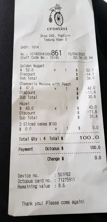 ,唔想你帮衬咁。讲野极不愿意, "要边款" 佢指蛋糕,但佢企系Cashier 柜讲,离蛋糕柜有尺几远,叫我点指比佢睇呀!大佬,之后攞盒大大力,哗,好唔愿做咁,更好味蛋糕,但见到佢我应该唔会想再帮衬。