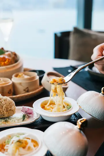 秋风起,到咗食大闸蟹嘅季节,就连酒店下午茶都用大闸蟹做主题,推出「秋日蟹逅」下午茶,咸点同埋甜品都各有特色🫖咸点♦️原只镇江姜醋蒸大闸蟹劲开心可以食到原只大闸蟹,一人一只,入面都有几多鲜甜嘅蟹膏🦀 侧边仲有手套,拆蟹嘅工具,咁就唔怕食得好狼狈啦🥰♦️大闸蟹蟹粉小笼包皮薄馅靓,入面嘅馅全部都系大闸蟹嘅蟹粉😍♦️蟹肉竹笙鱼翅羹呢个几鲜味嘅鱼翅羹入面见到丝丝蟹肉。♦️蟹粉拌面呢个面嘅质地几爽口,因为蟹粉一齐食,真系超正🍜♦️大闸蟹蟹粉芋角个人最钟意呢一个芋角,外层酥脆包裹住软绵绵嘅芋泥,入面就系满满嘅蟹粉✌🏻 非常有特色。甜点♦️螃蟹造型朱古力外层系朱古力包裹住酥皮丝、花生酱、咸蛋黄同炼奶🤣 螃蟹造型真系劲cute啊。♦️桂花香梨慕斯蛋糕呢个系香梨造型嘅蛋糕,外层系朱古力,入面就有桂花口味嘅mousse,同埋蜜饯过嘅梨肉🍐♦️佛手柑法式千层酥呢个法式千层酥几酥脆,入面仲有佛手柑嘅味道,都几fresh㗎🍊♦️陈皮曲奇中间有4件曲奇,味道好特别,用上陈皮同埋姜调味🍪♦️红豆汤系一碗几足料,有百合同埋莲子等嘅配料。自助小食区除咗套餐嘅咸点同埋甜点之外,仲有自助区,无限供应甜品 。♦️黑芝麻鸡蛋仔有即叫即制嘅鸡蛋仔,外脆内软都几正🥚♦️限定雪糕今日有六款口味,我就拣咗黑芝麻同埋花生酱味,仲有八款配料可以自己加添喺雪糕嚟食呀🍦气泡酒呢个下午茶餐有两杯嘅气泡酒,如果唔想饮酒嘅朋友亦都可以拣茶或者咖啡类嘅饮品🥂呢餐望住个海景食得好愉快,食物有特色又好啱打卡,店员会主动问我哋要唔要同个tea set合照,非常服务殷勤啊😎…查看更多