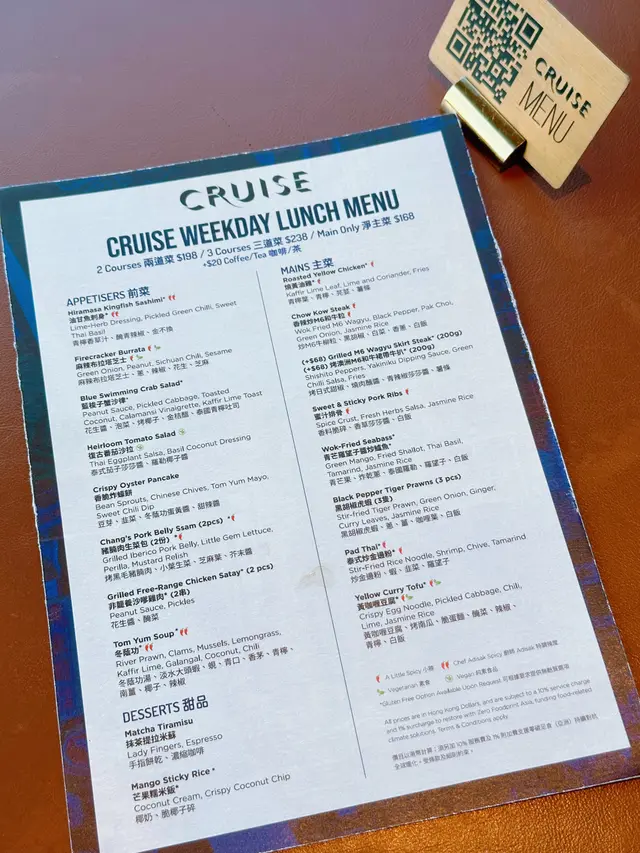 Cruise空中餐廳及酒吧 (北角) 网上订位即赚Rice Dollars 网址: https://s.openrice.com/QrLS0BTO800 地址: 香港北角北角邨里1號香港維港凱悅尚萃酒店西座23樓 电话: +852 38969898