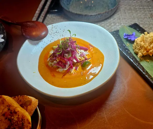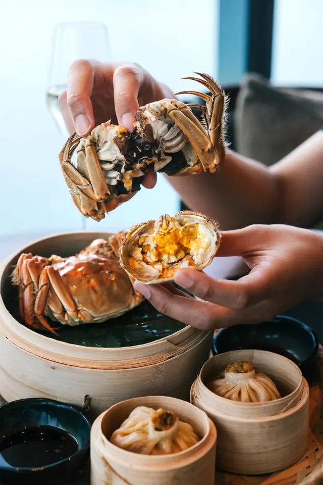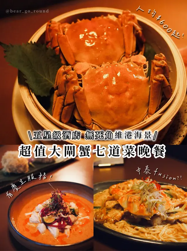秋風起,到咗食大閘蟹嘅季節,就連酒店下午茶都用大閘蟹做主題,推出「秋日蟹逅」下午茶,鹹點同埋甜品都各有特色🫖鹹點♦️原隻鎮江薑醋蒸大閘蟹勁開心可以食到原隻大閘蟹,一人一隻,入面都有幾多鮮甜嘅蟹膏🦀 側邊仲有手套,拆蟹嘅工具,咁就唔怕食得好狼狽啦🥰♦️大閘蟹蟹粉小籠包皮薄餡靚,入面嘅餡全部都係大閘蟹嘅蟹粉😍♦️蟹肉竹笙魚翅羹呢個幾鮮味嘅魚翅羹入面見到絲絲蟹肉。♦️蟹粉拌麵呢個面嘅質地幾爽口,因為蟹粉一齊食,真係超正🍜♦️大閘蟹蟹粉芋角個人最鍾意呢一個芋角,外層酥脆包裹住軟綿綿嘅芋泥,入面就係滿滿嘅蟹粉✌🏻 非常有特色。甜點♦️螃蟹造型朱古力外層係朱古力包裹住酥皮絲、花生醬、鹹蛋黃同煉奶🤣 螃蟹造型真係勁cute啊。♦️桂花香梨慕斯蛋糕呢個係香梨造型嘅蛋糕,外層係朱古力,入面就有桂花口味嘅mousse,同埋蜜餞過嘅梨肉🍐♦️佛手柑法式千層酥呢個法式千層酥幾酥脆,入面仲有佛手柑嘅味道,都幾fresh㗎🍊♦️陳皮曲奇中間有4件曲奇,味道好特別,用上陳皮同埋薑調味🍪♦️紅豆湯係一碗幾足料,有百合同埋蓮子等嘅配料。自助小食區除咗套餐嘅鹹點同埋甜點之外,仲有自助區,無限供應甜品 。♦️黑芝麻雞蛋仔有即叫即製嘅雞蛋仔,外脆內軟都幾正🥚♦️限定雪糕今日有六款口味,我就揀咗黑芝麻同埋花生醬味,仲有八款配料可以自己加添喺雪糕嚟食呀🍦氣泡酒呢個下午茶餐有兩杯嘅氣泡酒,如果唔想飲酒嘅朋友亦都可以揀茶或者咖啡類嘅飲品🥂呢餐望住個海景食得好愉快,食物有特色又好啱打卡,店員會主動問我哋要唔要同個tea set合照,非常服務殷勤啊😎…查看更多