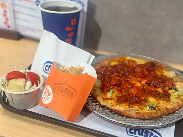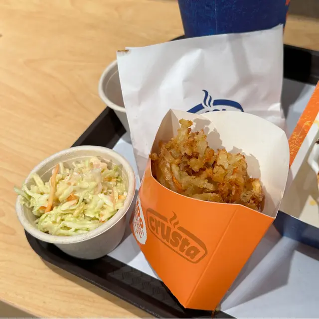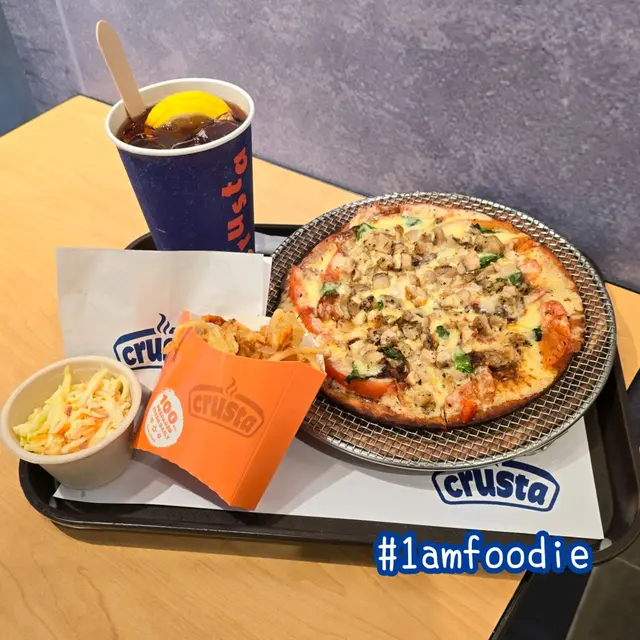 IG見到呢間舖頭好耐,我都鍾意食一啲比較健康啲,見到佢哋嘅pizza 餅底係比較健康一啲嘅做法,都好有興趣想試吓。而且見到佢哋嘅套餐價錢都非常吸引。🍕叫咗一個crusti pizza 套餐,套餐裏面有一個比較特別嘅炸薯條,口感比起平時嗰啲更加脆口,份量都好足夠👍另外,因為佢一開始整嘅時間比較長,要我哋等一段時間,所以佢哋額外免費送咗個沙律俾我哋,個沙律都好食,但係怕酸嘅朋友未必鍾意,但就好啱我口味。🥗佢沙律都有兩款,一個係醋沙律,一個係椰菜沙律除咗Pizza之外,都叫咗一個crusta pie,呢個係泰式雞味,嚟到嘅時候上面嗰個有啲似麥樂雞,呢個係令我有啲意想唔到嘅,佢入邊有一啲薯蓉,但係食落去一啲都唔膩,而且味道都好好,上面有啲泰式辣醬,但係下次我應該會試吓其他口味。😋價錢就真係抵,都係百幾蚊就可以食到飽飽😋😋😋😋👍💪🏻🍕仲要係有健康嘅選擇…查看更多