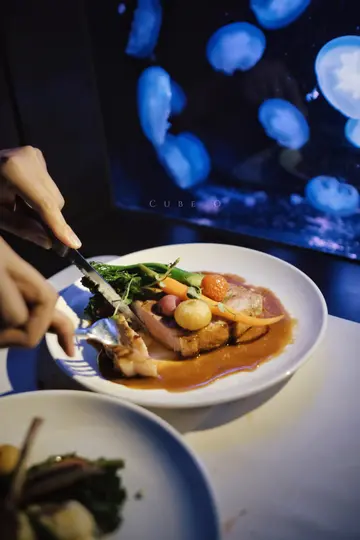 Cube O - Journey with Seajellies:An excellent and memorable meal experienceThis is the Cube Exploration Center in Haohai. At night, it becomes a restaurant called Jellyfish. It is truly amazing 👍🏻. The layout is commendable.The lighting in the restaurant is really low after you enter, which is exactly why jellyfish are so easy to spot! Adrian continued walking to other boxes to see the glowing jellyfish since he was so excited when he spotted it. On weekday evenings, we visit this restaurant, which is on a mid-to-high-end road. Dinner sets are available for three or four courses, respectively. 🍽️ There are also a la carte options and kid-friendly meals available. The tables are far apart, and there is a lot of privacy. 💡Must-order suggestions: M5 wagyu and scallops. Adrian insisted on asking for more, thus the amount of food consumed tonight is double what is customary. Mom is overjoyed!Each table will have a jellyfish aquarium, and the accommodations and dining will feature star-rated cuisine and sophisticated Together, let's have dinner with jellyfish and experience a unique combination of taste and sight ❤️.The Private functions can also be held at the restaurant. It would be a great idea to host Adrian's birthday celebration here the following year. A memorable and delightful mealThe Haohai Cube Exploration Center is located here. At night, it becomes a jellyfish restaurant. It's really amazing 👍🏻 I must commend the arrangemeThe lighting is really low once you enter the restaurant.…查看更多