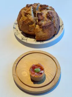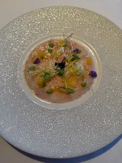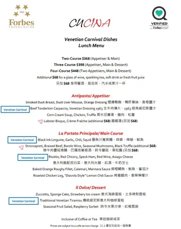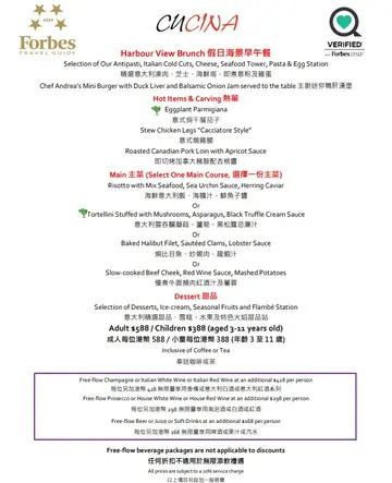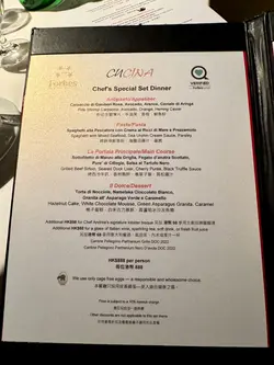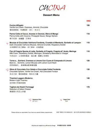 厨房 / 烹调 / 料理 嘅西班牙文🇪🇸都可以系 Cocina 不过我唔识意大利文🇮🇹但系西班牙文🇪🇸同埋意大利文🇮🇹都系拉丁语系咁我估 Cucina 都系 厨房 / 烹调 / 料理 咁解,上网睇一睇果然冇估错🤣呢晚就同朋友一齐嚟咗呢间高级意大利🇮🇹餐厅食晚餐,餐厅可以睇到维港海景,而呢晚我哋坐嘅枱就好正,清楚睇正维多利亚海港🤩我哋叫咗 $888 一位嘅 Chef's Special Set Dinner,咁我哋要咗两位🤣呢度嘅店长哥哥仲帮我哋做 Wine Pairing,头盘同埋主菜配适合嘅葡萄酒,真系配搭得非常之好,抵赞👍;仲有本地店长哥哥同埋尼泊尔店员妹妹招呼都好好,又系抵赞👍;Amuse Bouche 系三文鱼挞 仲有劲好食 Sourdough 酸种面包🤣Antipasto/Appetiser/前菜Carpaccio di Gamberi Rosa, Avocado, Arance, Caviale di Aringa / Pink Shrimp Carpaccio, Avocado, Orange, Herring Caviar / 粉红生虾薄片、牛油果、香橙、鲱鱼籽:Carpaccio 系典型意大利前菜,多数系用生牛肉片,不过后来发展到用不同食材都得,呢间餐厅就用咗好新鲜嘅粉红生虾,切成薄片,唔知系咪稍为 aged 过,变得稍为干身,令到 umami 更加集中,再加埋牛油果蓉等,令味道层次更加丰富🤣$108 Domaine Plou & Fils Les Hauts d'Artigny Chenin Blanc:前菜配呢个法国🇫🇷白酒,非常夹,Chenin Blanc 好 fruity,有清新嘅花香同埋青提香味,好清爽,性格鲜明🤣Paste/Pasta/意大利面Spaghetti alla Pescatora con Crema ai Ricci di Mare e Prezzemolo / Spaghetti with Mixed Seafood, Sea Urchin Cream Sauce, Parsley / 杂锦海鲜意粉、海胆忌廉汁、番茜:呢个海鲜意大利面少少 creamy,煮得软腍腍,味道同埋硬度都非常迎合香港人嘅胃口,口味大众化🤣La Portata Principale/Main Course/主菜Sottofiletto di Manzo alla Griglia, Fegato d'anatra Scottato, Pure' di Ciliegie, Salsa al Tartufo Nero / Grilled Beef Sirloin, Seared Duck Liver, Cherry Purée, Black Truffle Sauce / 烤西冷牛扒、香煎鸭肝、车厘子蓉、黑松露汁:牛肉要咗 medium,厨师控制生熟程度控制得好好,牛肉软熟好牛味🤣;红色嘅车厘子蓉甜甜哋同埋绿色咸咸地嘅菠菜蓉配牛扒一齐食,味道又好似清新啲啲,即系感觉比较 refreshing 🤣$188 Vietti Perbacco Langhe DOC, Piedmont, Nebbiolo:用咗意大利🇮🇹 Nebbiolo 葡萄酿制,Nebbiolo 系嚟自 Piedmont 地区,呢杯红酒🍷系 medium bodied,砖红橙色,有淡淡嘅士多啤梨、松露、烟草、朱古力香气同味道,aftertaste 中等程度,口感干净🤣朋友因为唔食牛,所以就改咗食鱼 - Filetto di Halibut al Forno, Calamari Saltati, Salsa all'Astice, Caviale di Aringa / Baked Halibut Fillet, Lobster Sauce, Sautéed Calamari, Herring Caviar / 焗比目鱼、龙虾汁、鱿鱼、鲱鱼子酱:比目鱼肉质鲜甜,配埋龙虾汁同鲱鱼子酱,味道层次又提高啲啲🤣$138 Oddero Langhe DOC Riesling:呢杯 Riesling 唔系 dessert wine, 亦都唔系嚟自德国🇩🇪,系来自意大利🇮🇹嘅 Riesling,干身、酸道够、口感清爽🤣Il Dolce/Dessert/甜品Torta di Nocciole, Namelaka Cioccolato Bianco, Granita all' Asparago Verde e Caramello / Hazelnut Cake, White Chocolate Mousse, Green Asparagus Granita, Caramel / 榛子蛋糕、白朱古力慕斯、青芦笋冰沙及焦糖:唔系好甜,再加两个字:好食🤣…查看更多