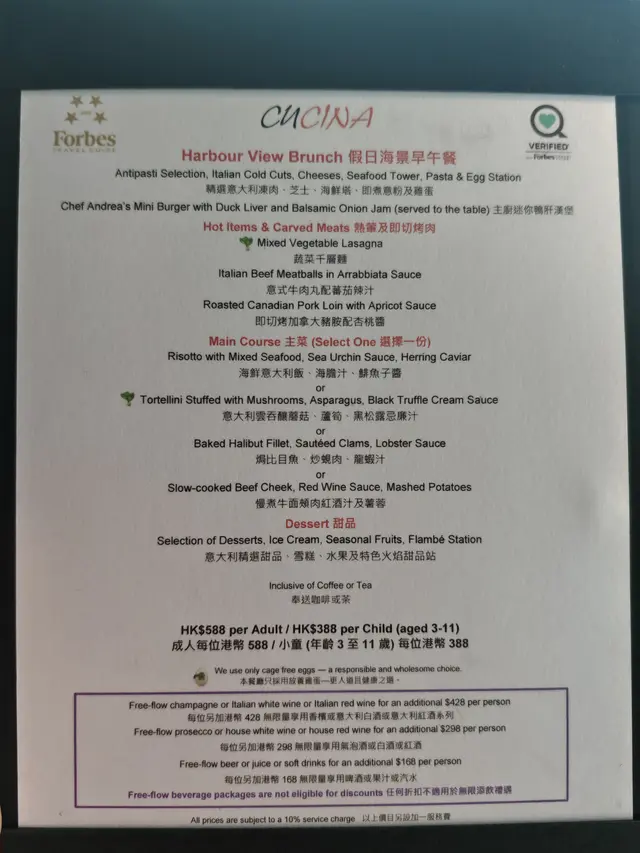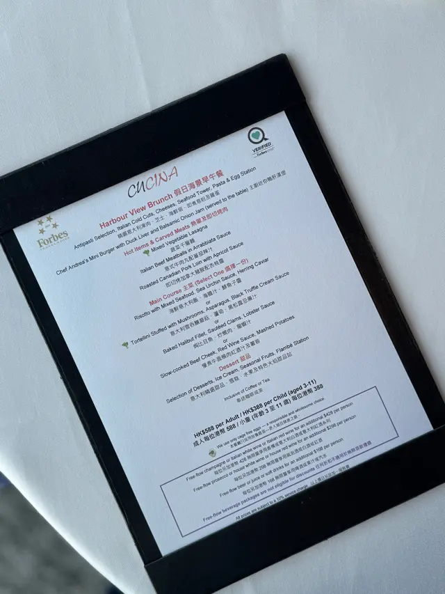 Happy birthday to me 😚多謝大肥肥幫我慶祝生日❤️今次去位於尖沙咀Marco Polo ge Cucina 食brunch 😚。Service 唔洗講都知一定係超級好ga la,但真係估唔到咁貼心,知道慶祝生日安排左窗口位等我地可以睇海景打打卡。食物方面,鵝肝漢堡同埋海鮮會拎嚟枱,冇得refill的,海鮮塔有龍蝦,海螺,鮑魚,長腳蟹等等,各樣都十分新鮮,我最鍾意係鮑魚,好入味。Main方面我哋揀咗慢煮牛面頰肉紅酒汁及薯蓉 & 海膽汁海鮮意大利飯!我只可以講真係超級好味!牛面頰肉炆煮到勁軟腍,意大利飯軟硬適中,味道是我杯茶,真係好鍾意。出邊有semi buffet提供,有湯、前菜、沙律、甜品。款式唔算好多,但都好高質!特別推介蕃茄湯真係超級蕃茄,勁好味!慢煮豬鞍同樣出色,比牛扒更軟滑。同埋呢度上菜完全唔會趕,可以按你節奏去Serve,我地由11:30食到3點,慢慢食慢慢傾下計好寫意,weekend brunch 都只係$588/pp! 食物非常好食 ,又有無敵開揚既海景靚view睇!呢餐生日brunch 本人表示好滿意同好開心!坐窗口位完全可以睇晒成個維港海景,所以真係好想搵次試吓佢嘅dinner set,睇住每晚8點既[幻彩詠香江]黎食飯一定好正!總言之,下次大時大節都會再嚟Cucina😊。…查看更多
