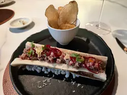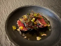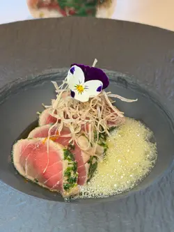 This French restaurant is located on Leighton Road in Causeway Bay, as part of Towngas flagship store, together with Towngas Cooking Centre. It is under executive chef Shine Chiu, who advocates the use of locally sourced ingredients on a farm to table concept.Walking up the stairs, we were seated at the main dining area. The décor is stylish, offering a cozy and relaxing ambience to diners. There is also a private room on the other side of the stairs, tailored for larger groups.I have opted for the 4-Course Set Dinner ($728) while my wife goes for the 3-Course ($658). For appetizers, I started with Tuna Tataki, with the raw tuna dressed in dashi and a bit of wasabi to season, together with some sesame to increase the fragrance. The shredded kombu further adds umami to the fish.The other appetizer I picked is Hand-cut Beef Tartare a la Parisienne. Served on a cut-open bone marrow, the beef tartare is seasoned beautifully, together with some pickled shallot. On the side are some fried chips which can combine with the tartare to enjoy together, providing additional texture. Good in taste.For the main course I have Catch of the Day, a local-farmed seabass, filleted and then pan-fried, with crisp skin, moist and tender flesh, paired with a garlic beurre blanc sauce which shows the perfect balance of sweetness and sourness. There are also some seasonal vegetables to balance the palate.I picked Burnt Basque Cheesecake for dessert. The cheesecake is rich, soft and sweet, with the cream cheese delicious in taste. On the side are some orange compotes to give a bit of citrus acidity to balance the cheesecake. Indulgent but rewarding, it provided a satisfying finish to the dinner.Together with two glasses of Schloss Johannisberg Riesling 2023 ($118 each), the bill on the night is $1,846. Service is good, but the staff could explain more the dishes, especially considering the farm-to-table concept, it would be good for diners to know where some of the food ingredients actually come from.…查看更多