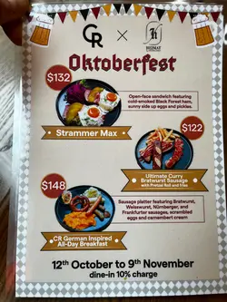 ❣️Cupping Room 🔍中环苏豪荷李活道49号鸿丰商业中心1楼——又到10月,又系一年一度嘅Oktoberfest 啤酒节,除咗周围都有好多限定活动之外,发现成日食嘅Cupping room都加入咗Oktoberfest嘅限定Menu。Ultimate Curry Bratwurst Sausage with Pretzel Roll and fries香肠口感扎实,有典型德式 Bratwurst 嘅肉香与弹性。洋葱番茄酱酸甜开胃,正好平衡肠嘅油脂感;Pretzel Roll外层带微咸、嚼感佳,内里柔软;薯条则香脆绵密,热辣辣。CR German Inspired All-Day Breakfast三款唔同嘅香肠各有千秋,全部都好Juicy,虽然系新Menu但系一贯Cupping room嘅水准,很不错。炒蛋香浓滑嫩,加上酸菜同Pretzel,好丰富嘅德式早餐。Coconut macha latte椰子、抹茶同奶,三样野个人都好中意,但加埋一齐又几有新意,系未试过嘅咖啡味,不错。Espresso tonic醒脑解腻,咖啡豆带独特酸香,无奶再加上微气泡助攻,咖啡豆嘅味更加出。单据比大家参考:…查看更多