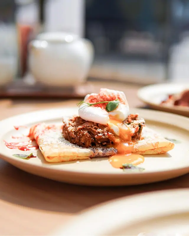 慢煮手撕豬腩肉配水波蛋
