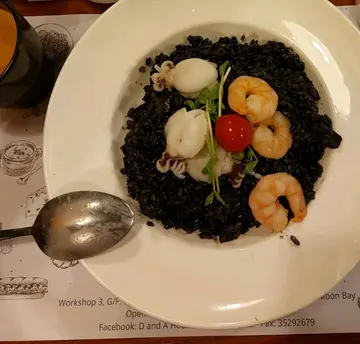 日前约左同事外出食lunch ,一于去工业区入面揾食❤。这家位于宏照道的「D&A House」装横风格简约。餐厅主打西餐主要提供饭类、意粉、薯条等主食,走薄利多销路线,主要serve 附近工作的打工仔 。我地12:00准时出发,时候尚早所以唔洗等位入座。个边人流超旺,好快已经全场满座。我点了墨鱼汁意大利海鲜饭🤤每粒意大利饭都沾满墨鱼汁 闻落好香喷喷~餐点用料丰富 好多海鲜🦞小鸟胃既我食唔晒啲海鲜~(´ー`)虾、小墨鱼应该是另外煮熟的,没有丰富口味😖食完之后更是唇齿留黑,是不折不扣的「黑暗料理」(误)(。•ㅅ•。)♡…查看更多