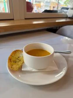 今日朋友仔难得放假,我地可以食个靓午餐,系元朗揾到呢间由外籍厨师主理嘅西餐,仲有户外位chill住食。好,坐低睇吓有咩好食先。午餐跟汤,汽水加12可以转茶和咖啡。南瓜汤,有南瓜蓉粒粒同黑椒,汤很浓郁。意大利辣椒香肠、玛格丽塔、帕玛火腿,每一块pizza都有parma ham,上面加左芝麻菜,咸咸嘅口感带一点清新。拎起一块pizza芝士仲会拉丝。虾子和鲑鱼寛面,个面表面挂满酱汁,蕃茄酱混合奶油食落好creamy鲜虾食落爽口,仲有三文鱼混合其中。饮品叫咗咖啡和香蕉奶昔,香蕉奶昔有浓厚香蕉味,上面仲有滑滑whipped cream…查看更多