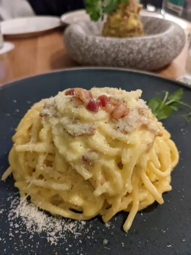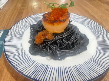 朋友介绍这间位于海港城的意大利餐厅。餐厅以黑色格调装修,相当有型格和气氛,座位阔落开扬。餐厅厨房采用开放式,我们坐下可以见到穿著制服的厨师非常忙碌,各有表情,就像看外国的厨艺比赛电视节目一样,好有趣。~~~食物质素也不错,尤其是海鲜类。🔶秘制吞拿鱼牛油果他他:吞拿鱼蓉他他又厚又多,上头铺满香浓顺滑的牛油果,清新好味。🔶香蒜白酒蚬肉扁意粉:淡淡白酒和蒜香味,蚬肉数量多又肥美,扁意粉弹牙又能挂汁。🔶青口煲:青口大只鲜美,剩下的汤汁更是精华,用脆面包条蘸汁好味道。…查看更多
