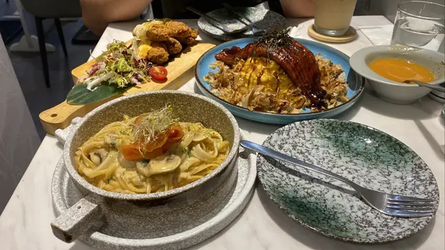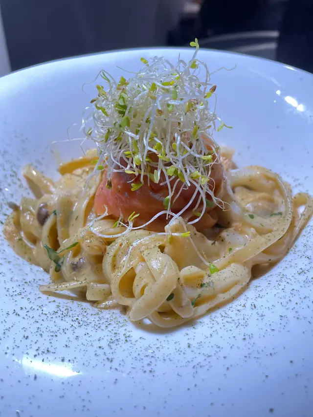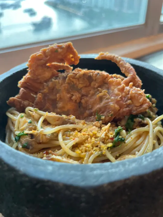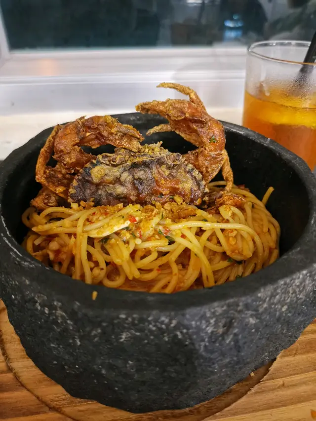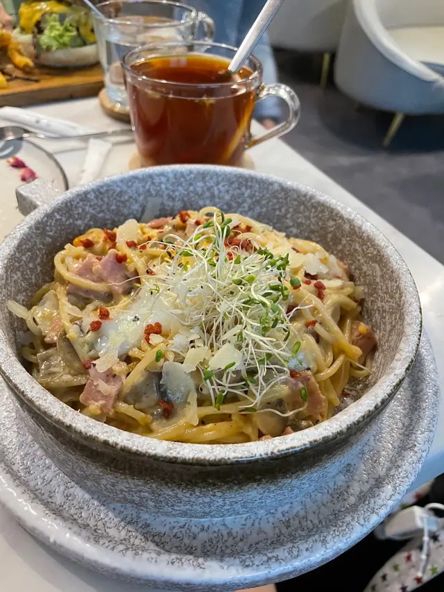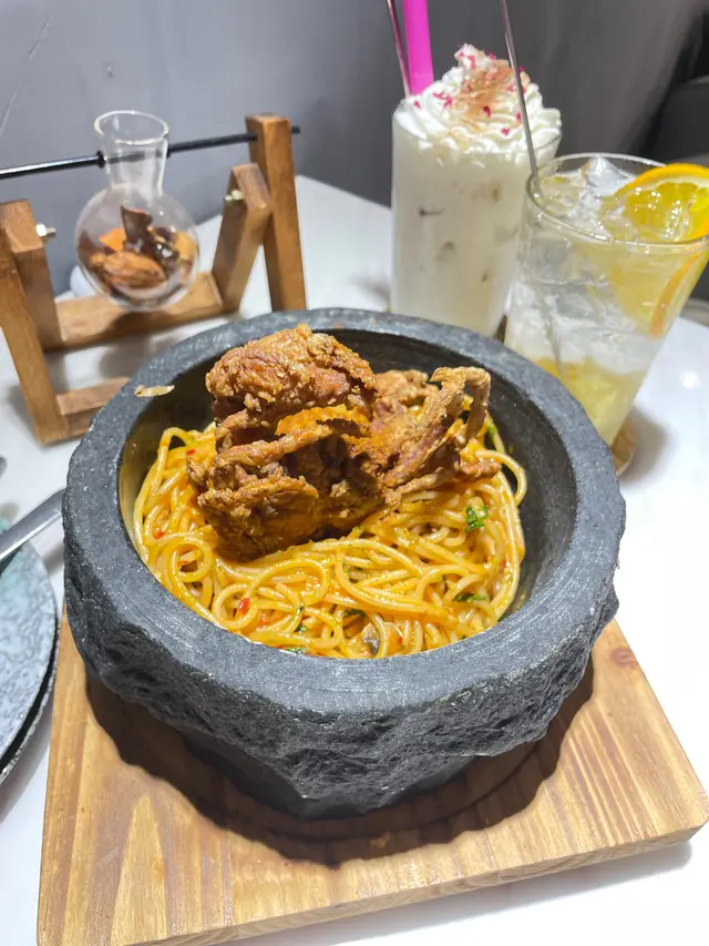 Cafe位於荃灣西嘅工廠大廈,餐廳嘅設計睇得出落個心思,裝飾用咗花做主題,佈置左好多小清新嘅裝飾,包括植物、單車打卡位等等,成個風格呈現灰白色,食物方面味道一流,價錢亦都好合理,又可以打卡又好味😋蒜香辣椒蜆肉意大利粉配軟殼蟹 $138佢一上碟嘅時候係成個石鍋上👍🏻軟殼蟹外脆內軟但唔會好油膩嘅感覺,食落去好香口,而且有大量蜆肉,個意粉炒得都幾乾身,🍝蒜香味十足而且微辣 🌶 ,識落好有層次好鬼惹味👍🏻蟹肉蟹籽明太子意粉🍝 $128成個意粉好creamy 😸亦都好多配料!每條意粉都好掛汁,意粉亦都好煙韌彈牙,食到有啖啖嘅蟹肉絲,整體味道一流❤️黃金芝士香辣雞塊 $88每一舊嘅雞塊都有芝士拉絲🧀,每一啖都好邪惡🥹,加埋啲雞塊炸到好脆口而且香辣味好重,好滋味🤩Oreo 朱古力🍫 $38飲落去係好香濃嘅忌廉朱古力味道,然後飲到啖啖嘅Oreo 碎,甜度啱啱好…查看更多