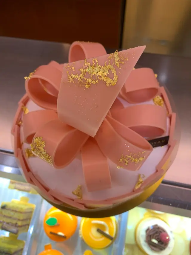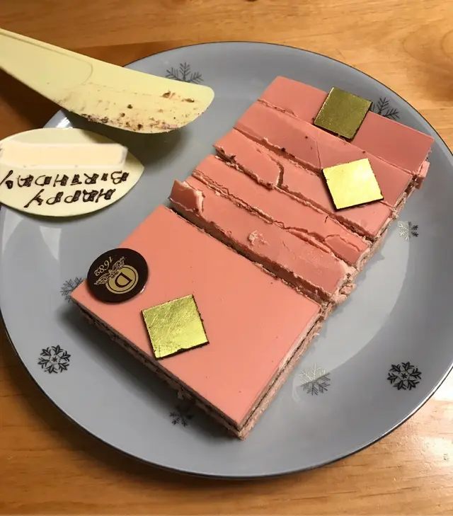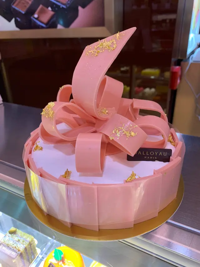 如果你有留意我既post,可能都發現其實我都係DALLOYAU既粉絲。一年一度大日子,係DALLOYAU訂左個蛋糕慶祝生日。DALLOYAU係來自法國既,今次揀左嗰款蛋糕叫Enchanting Apple,size係18cm,價錢$668。呢款蛋糕仲有個細啲嘅size係16cm,賣$438。跟蛋糕有塊心形或者圓形嘅朱古力慶祝牌。個蛋糕盒好大好靚,用靚絲帶綁好。不過其實入面個蛋糕細好多。個蛋糕賣點明顯係啲粉紅色嘅朱古力絲帶,上面仲有散落唔同位置嘅金箔。不過好可惜,有一忽絲帶係斷左,我地睇返啲相先發現原來我哋喺蛋糕店拎走之前已經斷左,雖然蛋糕正面望落去唔為意,但係都睇到斷左,都幾令人失望。除左粉紅色絲帶,蛋糕用左同樣嘅粉紅色朱古力片圍邊。朱古力係法國33%白朱古力,本身係又薄又滑,係好食嘅。至於拎走哂啲朱古力之後呢,個蛋糕就係有三層好普通嘅白色chiffon蛋糕,夾住兩層只有微微青蘋果味嘅啫喱同香滑而唔過膩嘅忌廉,味道黎講真係平平無奇,無乜層次感又冇特別,係輕盈唔膩一啲都唔重口味嘅,不過俾得呢個價錢唔會預收呢個貨色。失望至極。…查看更多