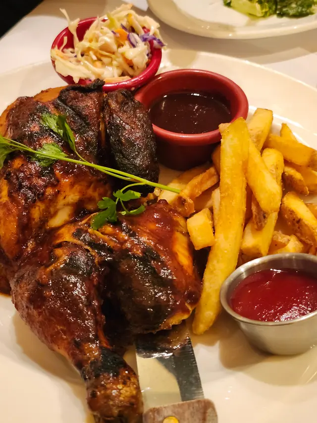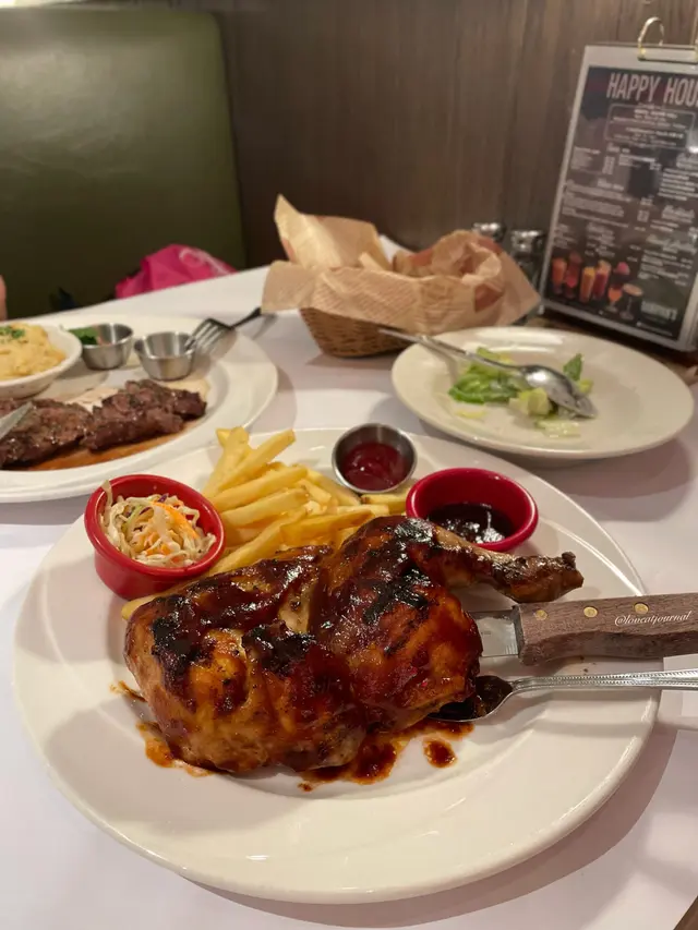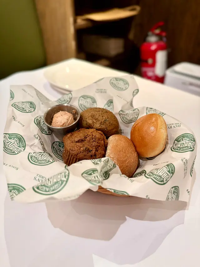 和朋友嚟到又一城店,以美式風格為主調,環境舒適,食物就以美式餐飲為主,份量相對大份點餐前店員先奉上麵包籃,有三款麵包和muffin,全部自家製,當中嘅muffin非常好味,令人回味🌟Chicago Set 個人自選套餐Starter (二選一)🍴招牌凱薩沙律 羅馬生菜新鮮脆嫩,配上香脆麵包粒和濃郁凱薩醬,味道清新開胃Main Course (九選一)🍴啤酒黃金炸魚兩大條炸魚,金黃香脆,魚肉嫩滑,配上櫻桃辣椒他他醬,微辣醒胃,滋味十足Dessert (三選一)🍴自家製布朗尼蛋糕布朗尼蛋糕口感軟綿,朱古力醬順滑香甜,配上新鮮朱古力士多啤梨,味道香濃好味,甜而不膩🌟另外主餐牌提供了前菜、沙律、意大利粉/飯、扒類/燒烤菜式、海鮮和甜品等多款選擇🍴慢烤美國進口BB豬排骨 (半份)外層烤到微微焦香,滿滿濃郁香甜醬汁,肉質嫩滑多汁,配上香脆薯條和清爽高麗菜,口感和味道都非常豐富…查看更多