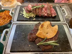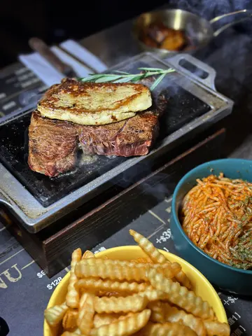 🥩荃湾联仁街呢间DAY22 STEAK真系正!近住杨屋道街市同旧三宝,主打石烧牛扒玩DIY~最正系可以自己喺热石板上烧牛扒,钟意几成熟就烧几耐,仲要座位够阔坐得舒服,简直系食肉兽嘅秘密基地!🐑纽西兰羊架超厚切羊架完全冇膻味,肉质嫩到爆!自己控制生熟度,加埋香草牛油慢慢溶化渗入肉里面,每啖都juicy到漏~🐂美国安格斯封门柳(8安士)封门柳本身已经系最嫩嘅部位,师傅仲要厚切上枱!配蒜蓉牛油真系无得输,蒜香同牛油香夹埋一齐,食落满口肉汁!🧈自选牛油玩法可以拣:✔️蒜蓉味 - 重口味必点✔️香草味 - 清新解腻牛油喺热石板上慢慢溶化,啲肉吸晒啲香味正到癫!🍲是日餐汤罗宋汤好足料,酸酸地好开胃~🥧酥皮忌廉汤(+$58套餐)酥皮脆卜卜,浸落忌廉汤索晒味,仲有好多蘑菇粒,饮完成个人都暖笠笠!🥗杂菜凯撒沙律新鲜生菜配浓郁凯撒酱,食完咁多肉清下个口啱晒!🍟脆薯条粗身波浪薯条炸到金黄,点黑松露酱简直系邪恶组合!🍹特大杂果宾治生果味爆灯!冰冰凉凉咁,同啲浓味肉好夹~🍋青柠梳打真系用新鲜青柠榨汁,酸爽到震!超大杯饮到饱~…查看更多
