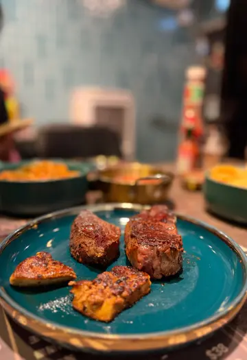 🥩荃湾联仁街呢间DAY22 STEAK真系正!近住杨屋道街市同旧三宝,主打石烧牛扒玩DIY~最正系可以自己喺热石板上烧牛扒,钟意几成熟就烧几耐,仲要座位够阔坐得舒服,简直系食肉兽嘅秘密基地!🐑纽西兰羊架超厚切羊架完全冇膻味,肉质嫩到爆!自己控制生熟度,加埋香草牛油慢慢溶化渗入肉里面,每啖都juicy到漏~🐂美国安格斯封门柳(8安士)封门柳本身已经系最嫩嘅部位,师傅仲要厚切上枱!配蒜蓉牛油真系无得输,蒜香同牛油香夹埋一齐,食落满口肉汁!🧈自选牛油玩法可以拣:✔️蒜蓉味 - 重口味必点✔️香草味 - 清新解腻牛油喺热石板上慢慢溶化,啲肉吸晒啲香味正到癫!🍲是日餐汤罗宋汤好足料,酸酸地好开胃~🥧酥皮忌廉汤(+$58套餐)酥皮脆卜卜,浸落忌廉汤索晒味,仲有好多蘑菇粒,饮完成个人都暖笠笠!🥗杂菜凯撒沙律新鲜生菜配浓郁凯撒酱,食完咁多肉清下个口啱晒!🍟脆薯条粗身波浪薯条炸到金黄,点黑松露酱简直系邪恶组合!🍹特大杂果宾治生果味爆灯!冰冰凉凉咁,同啲浓味肉好夹~🍋青柠梳打真系用新鲜青柠榨汁,酸爽到震!超大杯饮到饱~…Read More