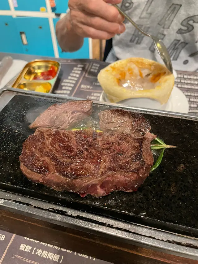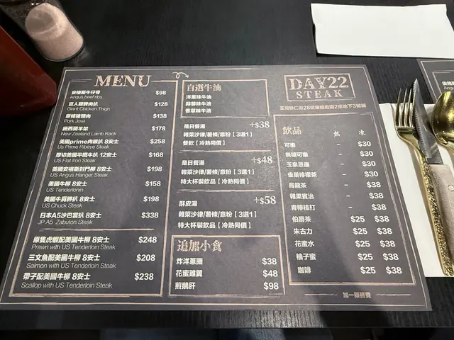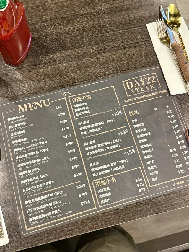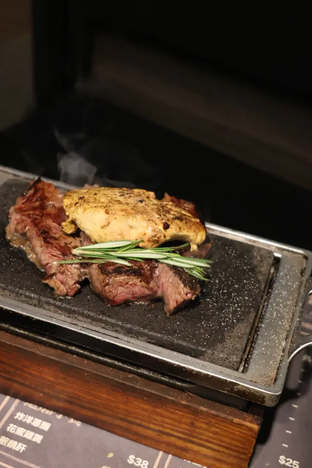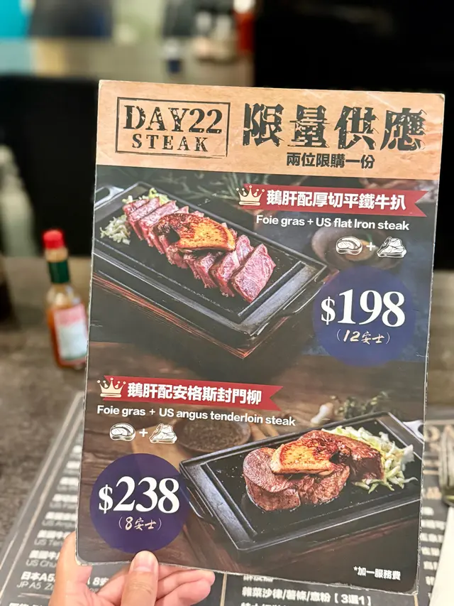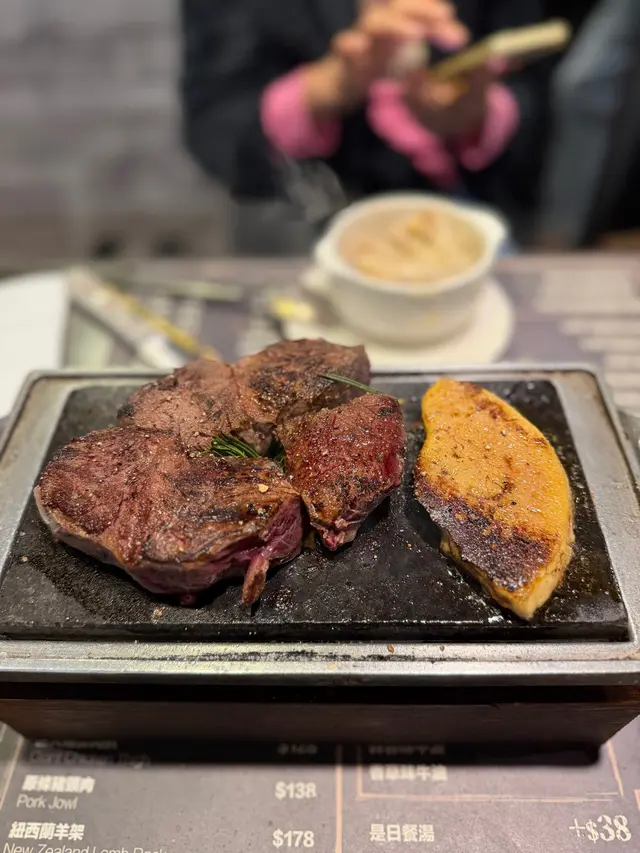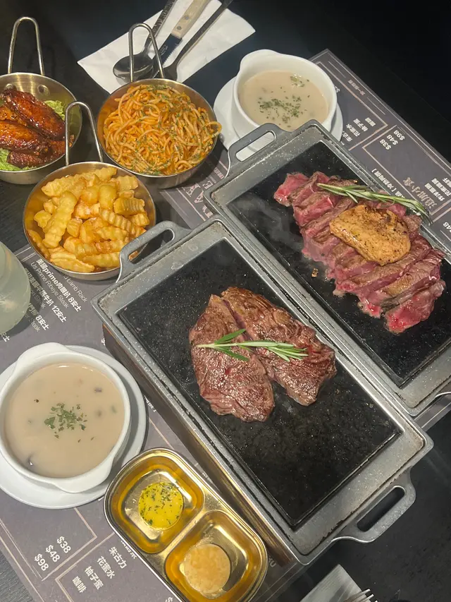 🥩荃灣聯仁街呢間DAY22 STEAK真係正!近住楊屋道街市同舊三寶,主打石燒牛扒玩DIY~最正係可以自己喺熱石板上燒牛扒,鍾意幾成熟就燒幾耐,仲要座位夠闊坐得舒服,簡直係食肉獸嘅秘密基地!🐑紐西蘭羊架超厚切羊架完全冇羶味,肉質嫩到爆!自己控制生熟度,加埋香草牛油慢慢溶化滲入肉裏面,每啖都juicy到漏~🐂美國安格斯封門柳(8安士)封門柳本身已經係最嫩嘅部位,師傅仲要厚切上枱!配蒜蓉牛油真係無得輸,蒜香同牛油香夾埋一齊,食落滿口肉汁!🧈自選牛油玩法可以揀:✔️蒜蓉味 - 重口味必點✔️香草味 - 清新解膩牛油喺熱石板上慢慢溶化,啲肉吸晒啲香味正到癲!🍲是日餐湯羅宋湯好足料,酸酸地好開胃~🥧酥皮忌廉湯(+$58套餐)酥皮脆卜卜,浸落忌廉湯索晒味,仲有好多蘑菇粒,飲完成個人都暖笠笠!🥗雜菜凱撒沙律新鮮生菜配濃郁凱撒醬,食完咁多肉清下個口啱晒!🍟脆薯條粗身波浪薯條炸到金黃,點黑松露醬簡直係邪惡組合!🍹特大雜果賓治生果味爆燈!冰冰涼涼咁,同啲濃味肉好夾~🍋青檸梳打真係用新鮮青檸榨汁,酸爽到震!超大杯飲到飽~…查看更多