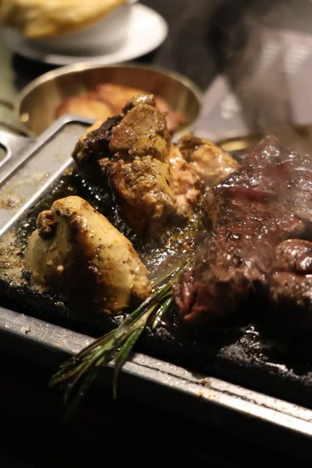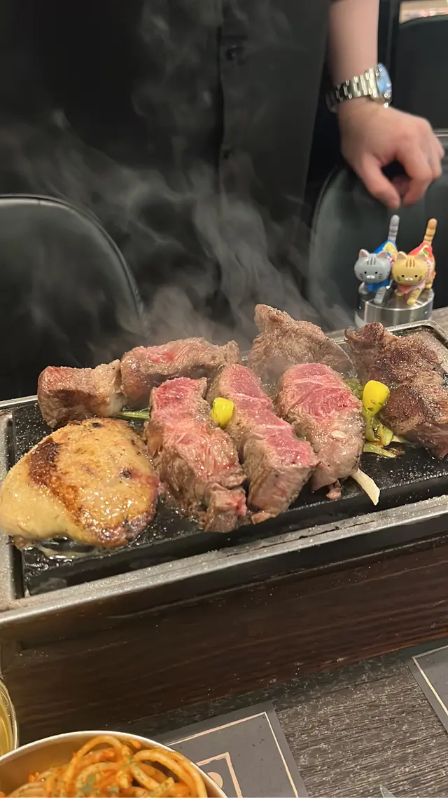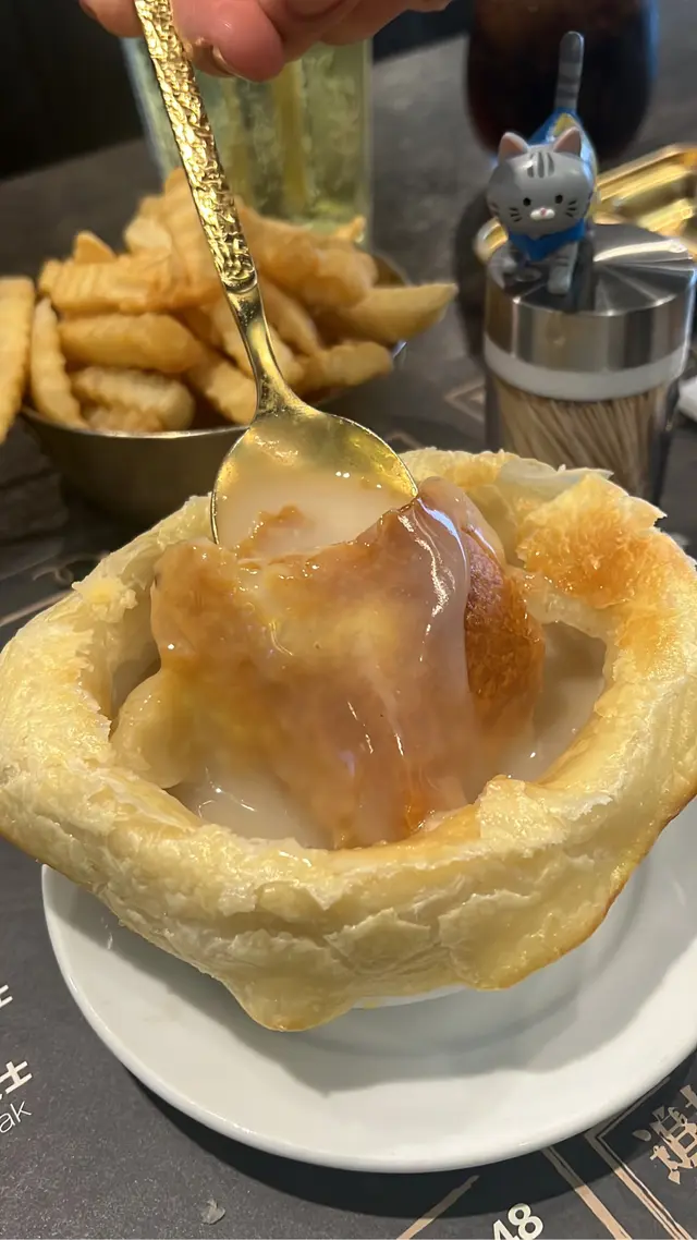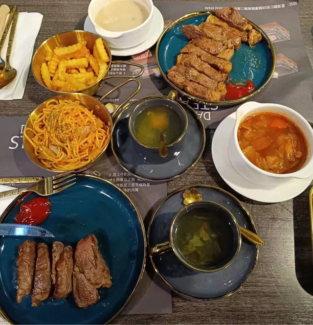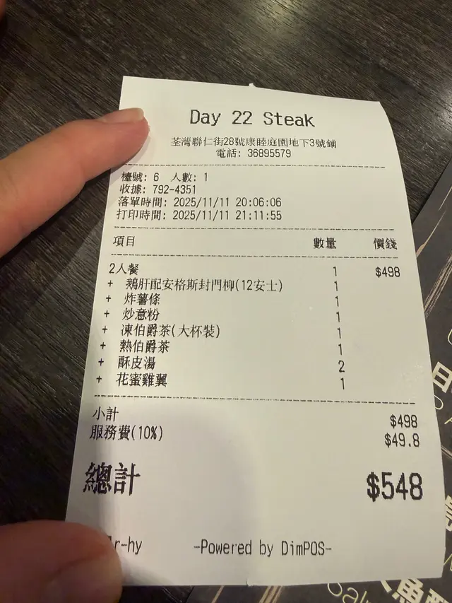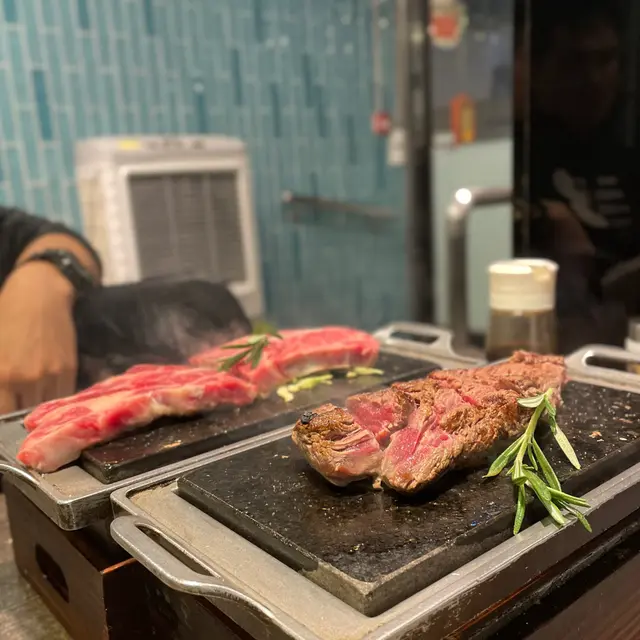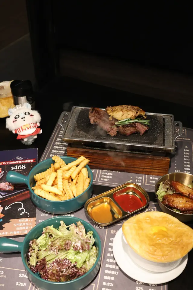 🥩荃灣聯仁街呢間DAY22 STEAK真係正!近住楊屋道街市同舊三寶,主打石燒牛扒玩DIY~最正係可以自己喺熱石板上燒牛扒,鍾意幾成熟就燒幾耐,仲要座位夠闊坐得舒服,簡直係食肉獸嘅秘密基地!🐑紐西蘭羊架超厚切羊架完全冇羶味,肉質嫩到爆!自己控制生熟度,加埋香草牛油慢慢溶化滲入肉裏面,每啖都juicy到漏~🐂美國安格斯封門柳(8安士)封門柳本身已經係最嫩嘅部位,師傅仲要厚切上枱!配蒜蓉牛油真係無得輸,蒜香同牛油香夾埋一齊,食落滿口肉汁!🧈自選牛油玩法可以揀:✔️蒜蓉味 - 重口味必點✔️香草味 - 清新解膩牛油喺熱石板上慢慢溶化,啲肉吸晒啲香味正到癲!🍲是日餐湯羅宋湯好足料,酸酸地好開胃~🥧酥皮忌廉湯(+$58套餐)酥皮脆卜卜,浸落忌廉湯索晒味,仲有好多蘑菇粒,飲完成個人都暖笠笠!🥗雜菜凱撒沙律新鮮生菜配濃郁凱撒醬,食完咁多肉清下個口啱晒!🍟脆薯條粗身波浪薯條炸到金黃,點黑松露醬簡直係邪惡組合!🍹特大雜果賓治生果味爆燈!冰冰涼涼咁,同啲濃味肉好夾~🍋青檸梳打真係用新鮮青檸榨汁,酸爽到震!超大杯飲到飽~…查看更多