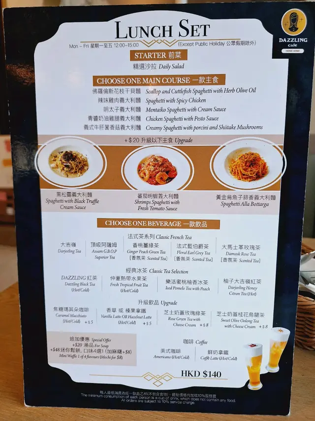 Dazzling Cafe (The ONE) (尖沙咀) 网址: https://s.openrice.com/QrLS0yyb0W0 地址: 香港尖沙咀彌敦道100號The ONE 3樓L322-L323號舖 电话: +852 23126099