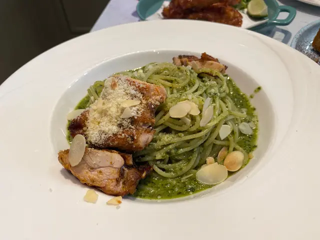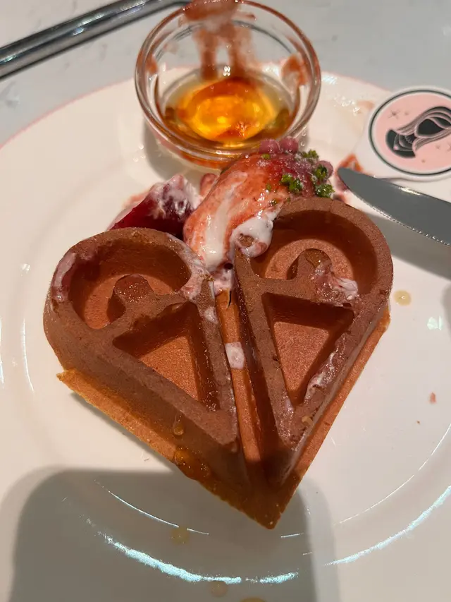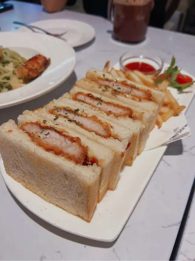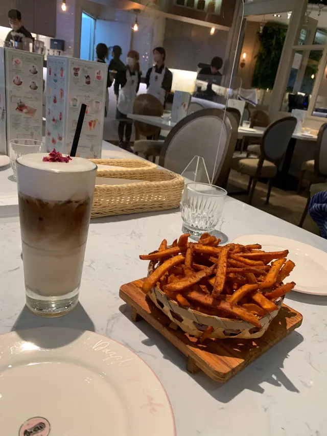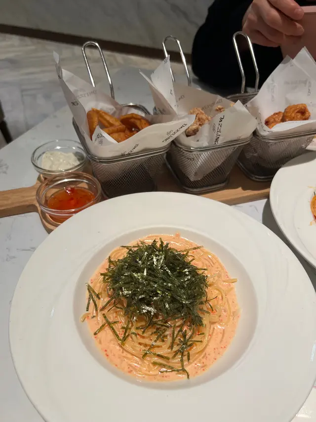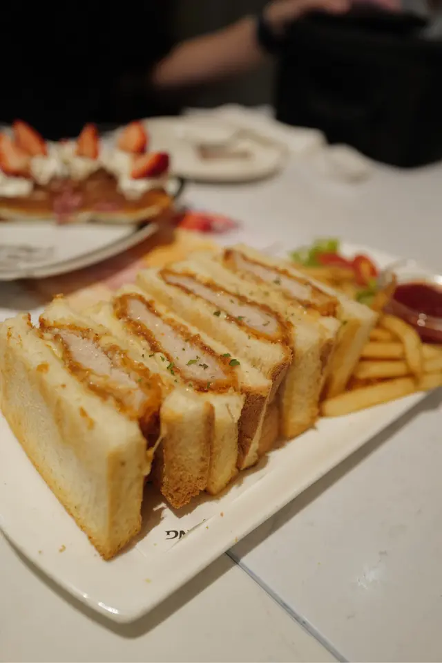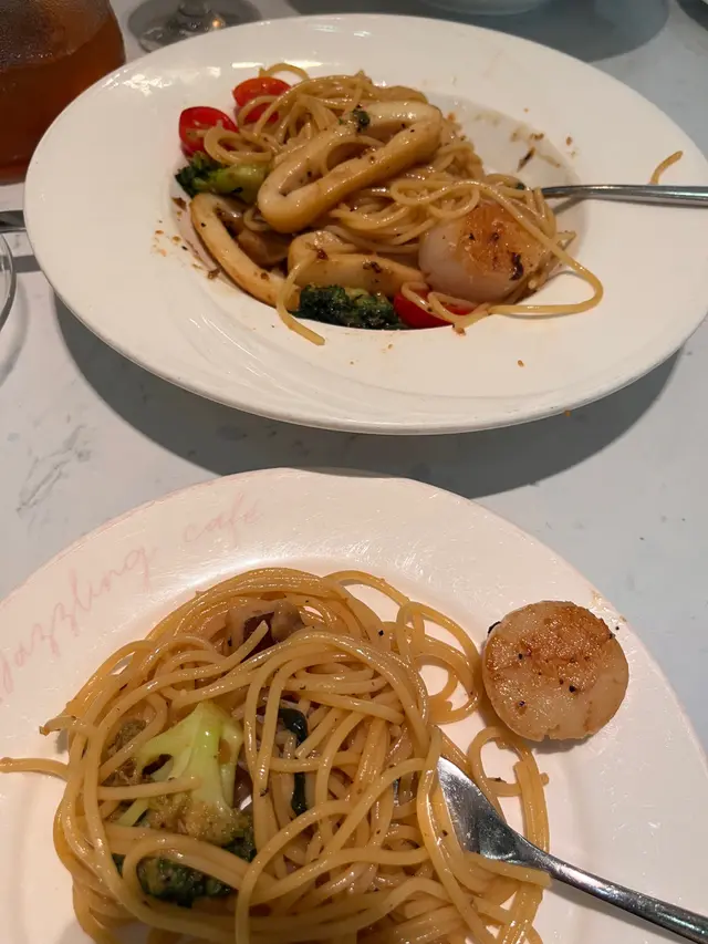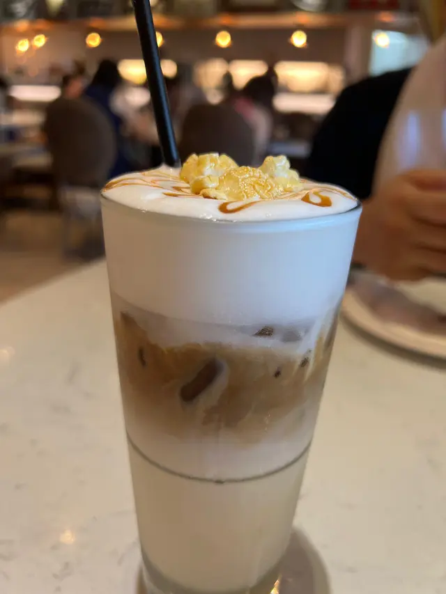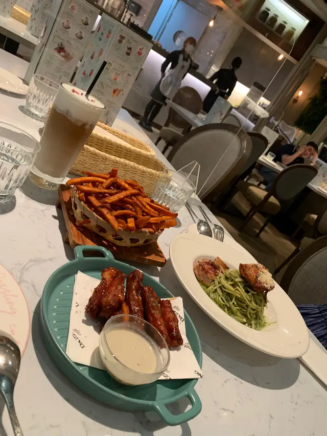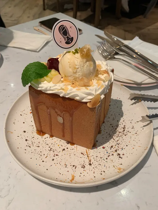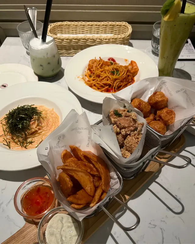 Dazzling Cafe 最低消費係每人一杯飲品,唔計食物,即係你食幾多都好,都要每人一杯飲品🍹有啲人會覺得好奇怪,我個人就唔太介意,因為佢哋嘅飲品大部分都好好飲,暫時都未中過伏🤣🍹芒芒好椰 $58 / 愛文芒果烏龍冰茶 $48芒果椰奶沙冰 & 冰茶清涼解渴,夏天飲就啱晒👍🏻·明太子義大利麵 $108𝙈𝙚𝙣𝙩𝙖𝙞𝙠𝙤 𝙎𝙥𝙖𝙜𝙝𝙚𝙩𝙩𝙞 𝙬𝙞𝙩𝙝 𝘾𝙧𝙚𝙖𝙢 𝙎𝙖𝙪𝙘𝙚每次都要食🤤 我已經當咗佢係招牌菜🤣 奶油味中帶點明太子嘅鹹香,特別鍾意上面嘅紫菜絲,視覺效果💯 加上本身有嘅魚子粒粒,食落口感好得意👍🏻·辣味雞肉義大利麵 $98𝙎𝙥𝙖𝙜𝙝𝙚𝙩𝙩𝙞 𝙬𝙞𝙩𝙝 𝙎𝙥𝙞𝙘𝙮 𝘾𝙝𝙞𝙘𝙠𝙚𝙣食落其實唔太辣,好香口,佢哋比較多奶油類意粉,如果唔想食奶油類嘅可以揀依個😉·提拉米蘇丹麥吐司 $108𝙏𝙞𝙧𝙖𝙢𝙞𝙨𝙪 𝘿𝙖𝙣𝙞𝙨𝙝 𝙃𝙤𝙣𝙚𝙮 𝙏𝙤𝙖𝙨𝙩味道同個名一樣就係經典嘅tiramisu flavour食落第一啖嘅酒香味最濃,之後一定要配上雪糕,味道口感都好夾👍🏻 可惜食得太飽,我哋最後係冇食晒個甜品嘅🫢🫢✨銅鑼灣餐廳有啲凳有兔仔耳🐰 唔係一定坐得到,睇彩數🫢 雖然我哋都唔係為打卡,但就好似開盲盒咁,坐得中有兔仔耳嘅凳都幾開心㗎🥰…查看更多