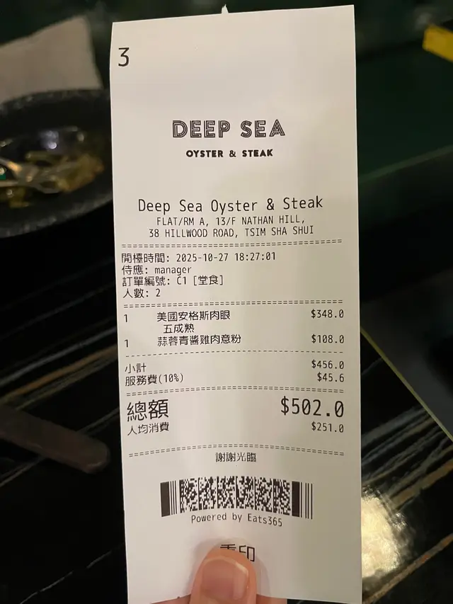Deep Sea Oyster & Steak (尖沙咀) 网上订位享低至7折优惠并赚Rice Dollars 网址: https://s.openrice.com/QrLS07XOB00 地址: 香港尖沙咀山林道38號銀座38 13樓A號舖 电话: +852 98793921