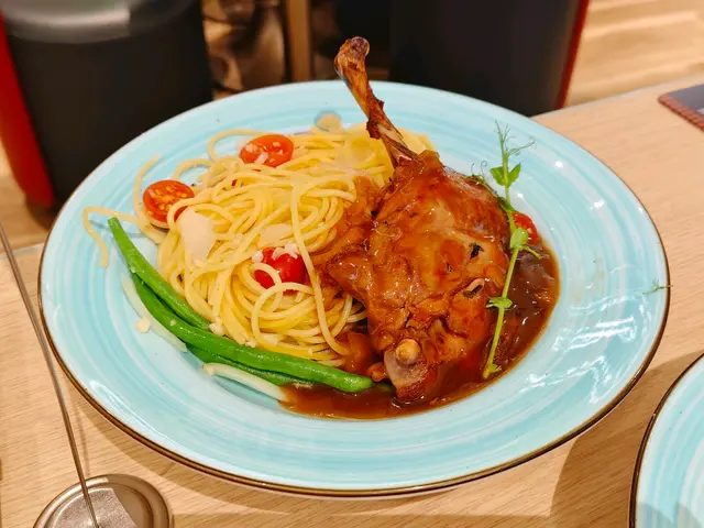 慢煮鴨腿意粉配柚子燒汁及雜菜