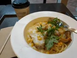 Go vegan day!There is a new dish of Sautéed “Carbonara” linguine with omnipork, which omnipork is a plant-based pork.Texture-wise, it still has a funky soy-based food integrity... but if you are a intense meat eater and would like to have a day out, that maybe your choice.…查看更多