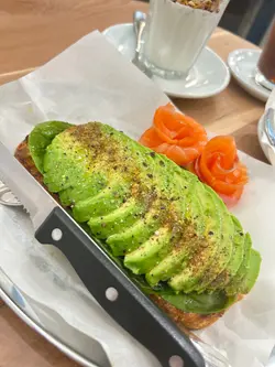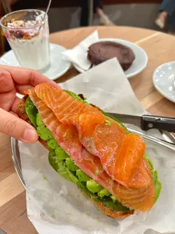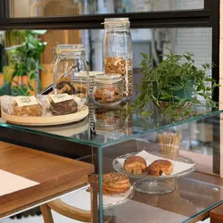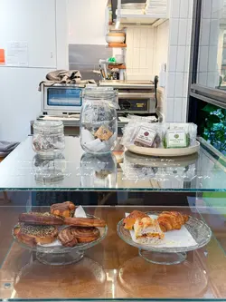 呢份真系超丰富!厚切三文鱼新鲜又唔会太咸!仲有牛油果🥑 菠菜🥬 蛋同黑柿番茄,色彩缤纷又健康,配搭芝士、香草同柠檬🍋留有空间感嘅透明玻璃柜放上各类pastry,每日出炉款式都唔同🥐Vegan Pandan Mochi Cookie 🍪