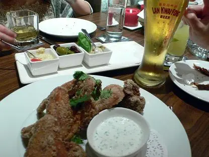 Prawn platter: with rich sauce and very freshfish & chips: come with many chips. Fish was fried in special way which we haven't tries beforeBurger: Burger was juicy, thick beef was fresh and come with chips as wellChicken Wing: a bit spicy and very deliciousAnd we ordered some beers and sat for long time, a wonderful restaurant for all of us indeed.