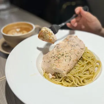 ☕️ Diff Cafe 🍝当年睇Yellowland 果集睇到我眼湿湿就Bookmarked Diff Cafe 玮定去今次终于食到了(〃ω〃)果然无令我失望~🍤 香煎大虾海胆忌廉汁意粉 $113成个Presentation好靓唔知系咪坐咗喺个射灯位盏灯照住碟嘢食好似闪闪发光咁每一条意粉都有海胆酱 食落劲挂汁而且放咗啲蟹籽喺上面一粒粒咁除咗靓啲仲好有口感啲虾又大只 仲都好晶莹剔透咁🌽 Lunch Set送左个餐汤 粟米汤超好饮 系果种自家制粟米蓉既汤有少少极碎粟米渣 但唔会痴住喉咙同时又增强左个口感俾多8碗我都饮得落(〃ω〃)🥗 10oz 慢煮鸡胸青酱意粉 $108作为一个俾JB话我点解咁lun肥既人就系因为我食野求lun其今次见到Cafe竟然有10oz 慢煮鸡胸就好奇心发作想试下估唔到佢真系原块低胸咁上新尝试之下觉得个鸡胸系几健康用10oz煮个鸡肉肉质真系嫩滑啲而下面既青酱意粉就正常发挥☕️ 终于见到啲贴地少少嘅咖啡价钱而家普遍嘅价钱好似差唔多都40几蚊搞到我见到30几蚊嘅咖啡都觉得平Mocha $39 / Latte $36偏Nutty (о´∀`о) 系几好饮 …查看更多