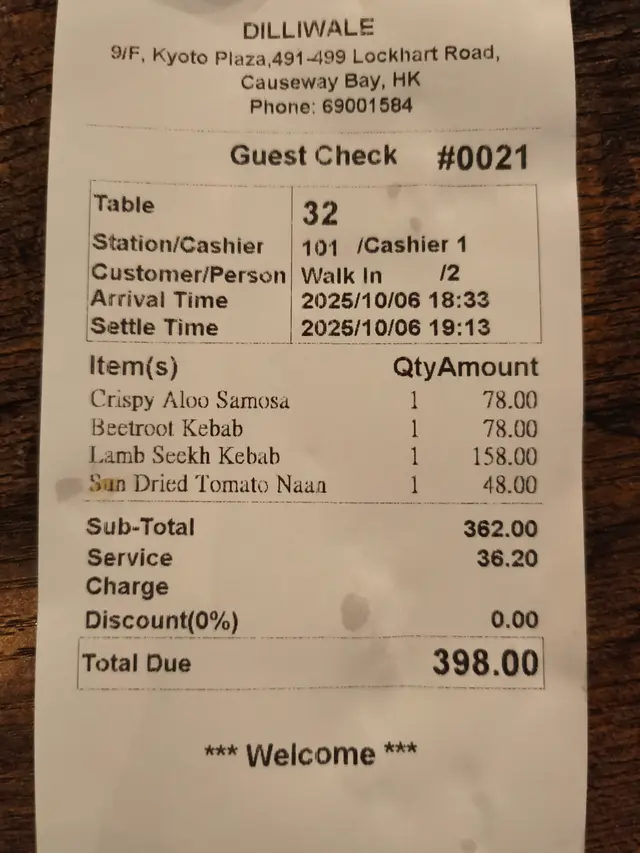 Dilliwale (铜锣湾) 网上订位享低至9折优惠并赚Rice Dollars 网址: https://s.openrice.com/QrLS0yXA5W0 地址: 香港銅鑼灣駱克道491-499號京都廣場9樓 电话: +852 60734268