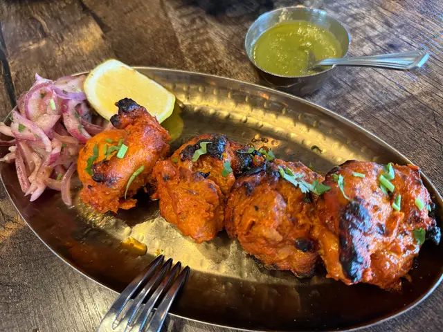 Chicken Tikka (148$)燒雞件, 相對地口味就light小小, 雞胸肉質偏瘦加埋lemon 汁食落無負擔.伴碟係調味過嘅生洋蔥, 冒住臭口都忍唔到會食哂! 好惹味!
